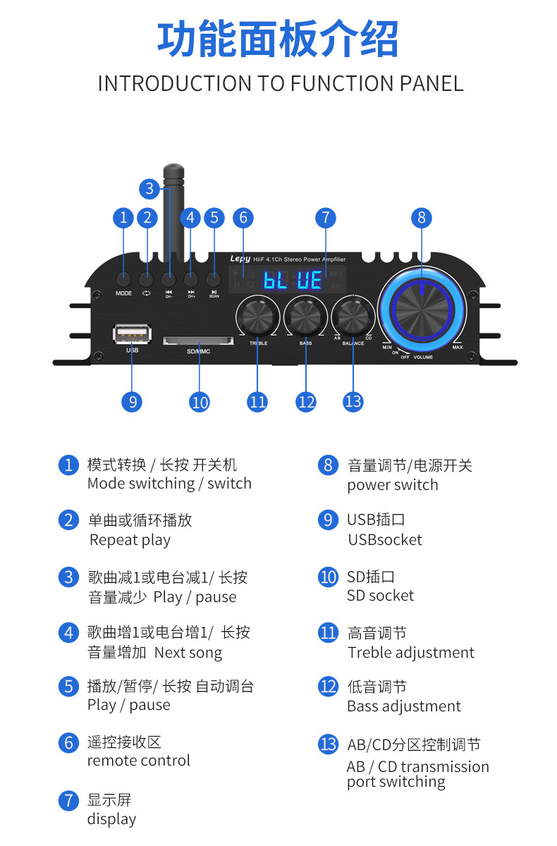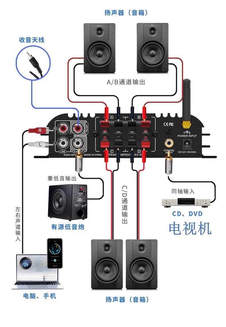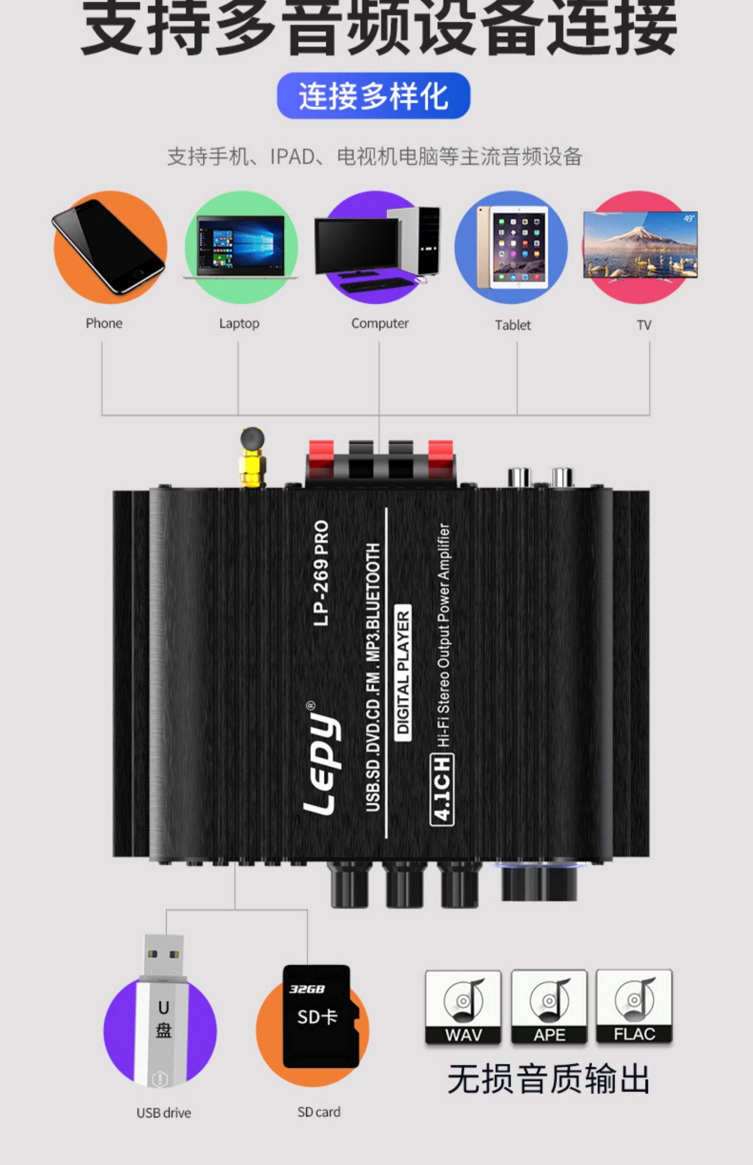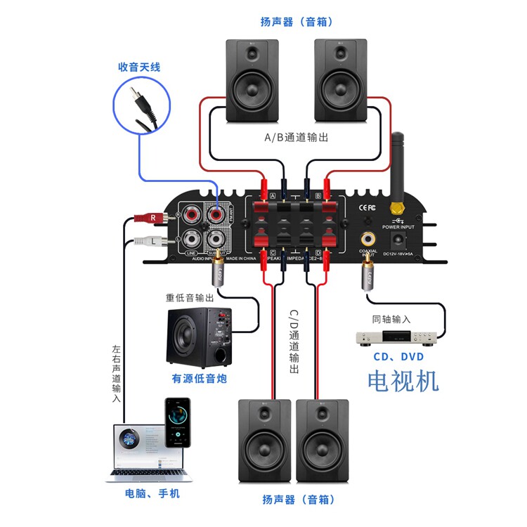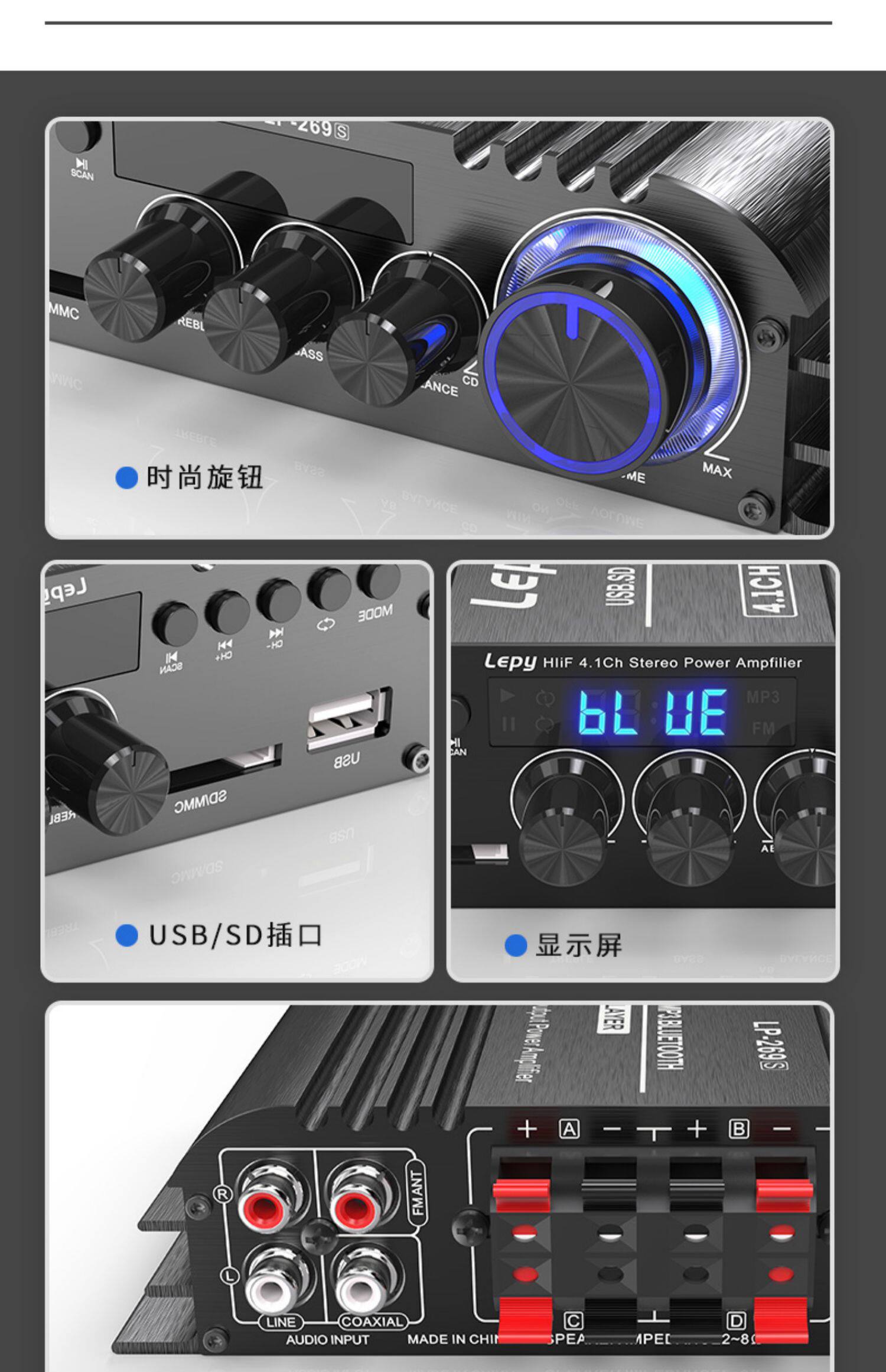 4,1-канальный 5,0 Bluetooth-усилитель коаксиального декодирования, радио-сабвуфер, воспроизведение музыки без искажений, U-диск, воспроизведение SD