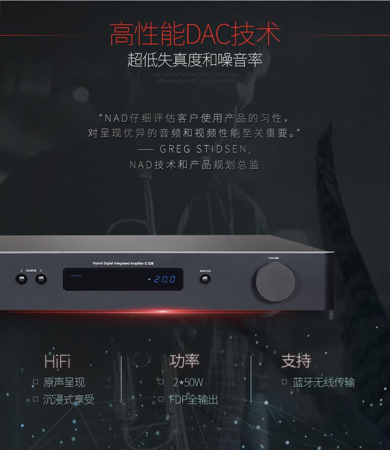 NAD C338+Fever Wire Set, предоставляя цифровую лихорадку Bluetooth Hifi в сочетании с высокой скачкой и усилителем чистой мощности