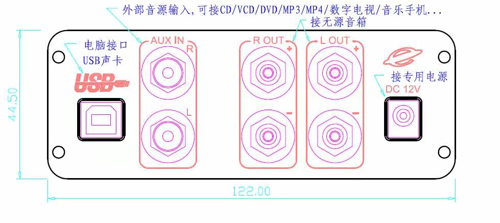 - Функция: с двойным входным двойным выводом: обычныйRCAВход иUSBВход (в -махин декодирование), выход усилителя мощности и выход усилителя.В основном удовлетворяет все потребности настольного мультимедиа.