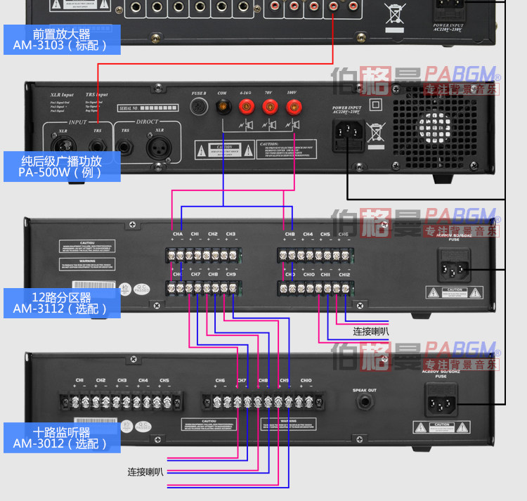 Усилитель мощности вещания с поддержкой ввода высокого давления 100 В фиксированный сигнал.