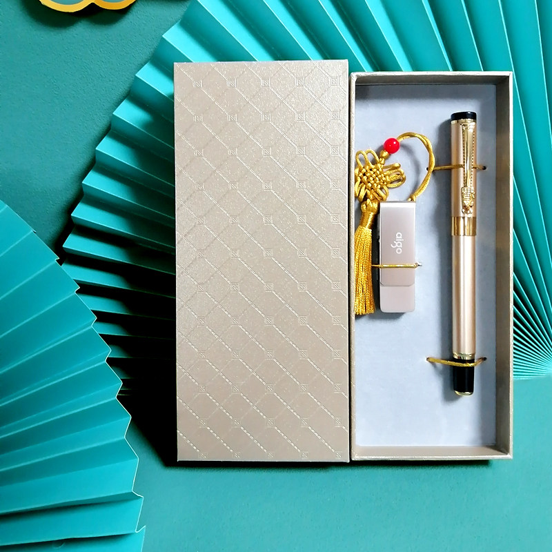 - Подарочная коробка, ручка-роллер, металлическая льняная сумка, 64G, делается под заказ