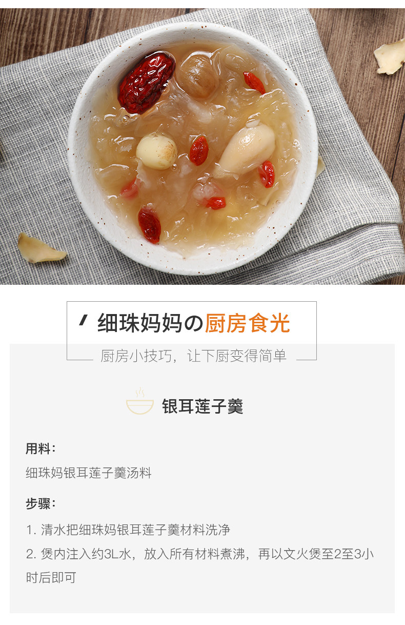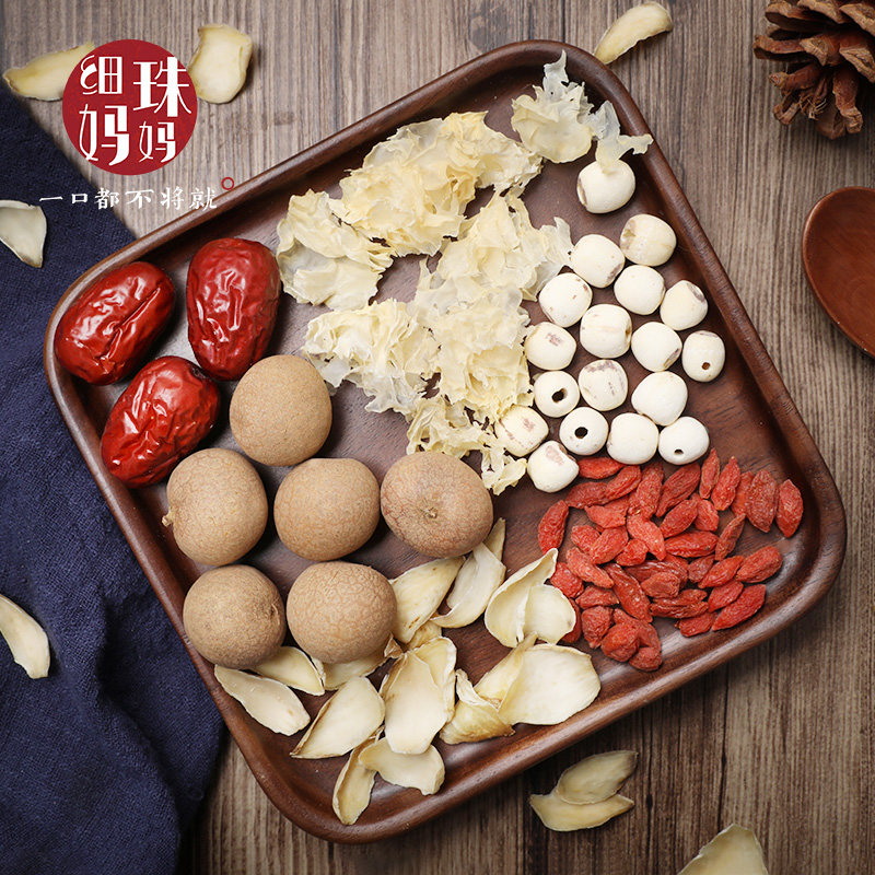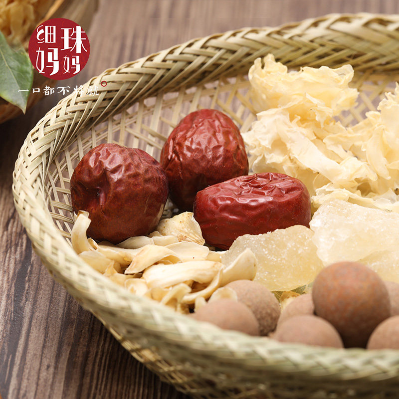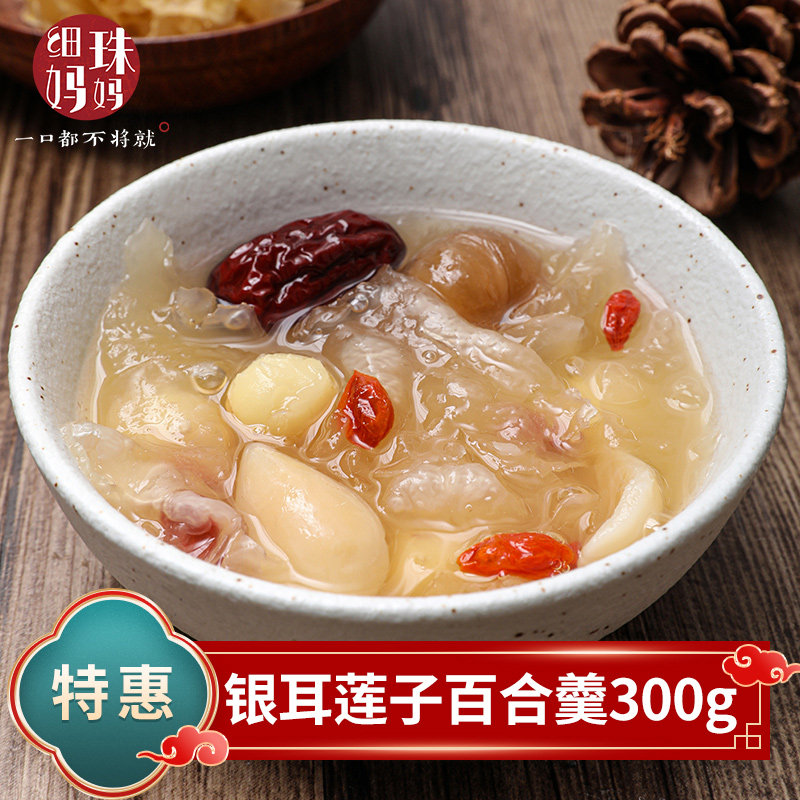 细珠妈妈 Тремелла лотос семена лилия красные свидания Wolfberry 子 300 г снежного снежного -белый грибок суп материал сухой товары комбинация