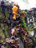 Глубина леса источает жизненную силу природы различных диких грибов.