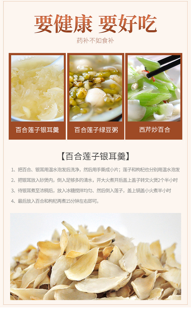 Лили высушенная 100 г свежую съедобная сладкая лилия без серы серы, север -южные сухие товары дикие -не -ланчжоу специальность