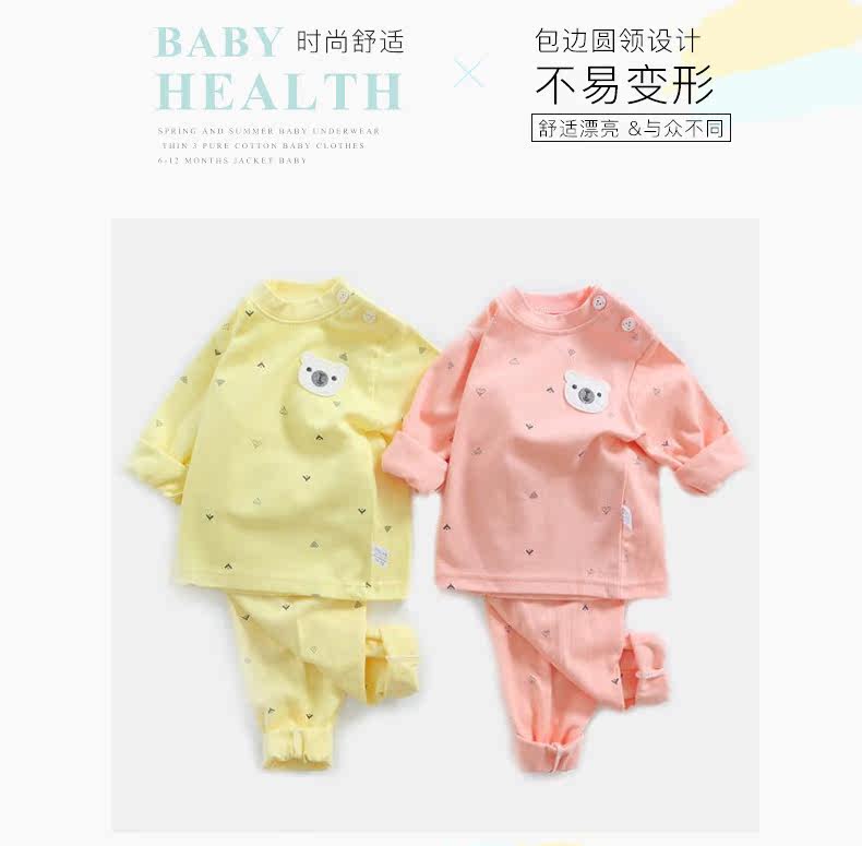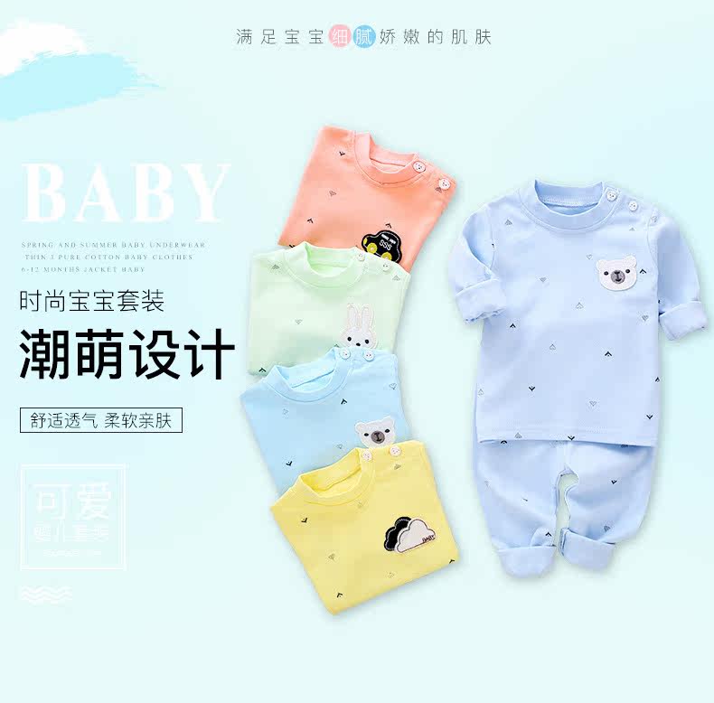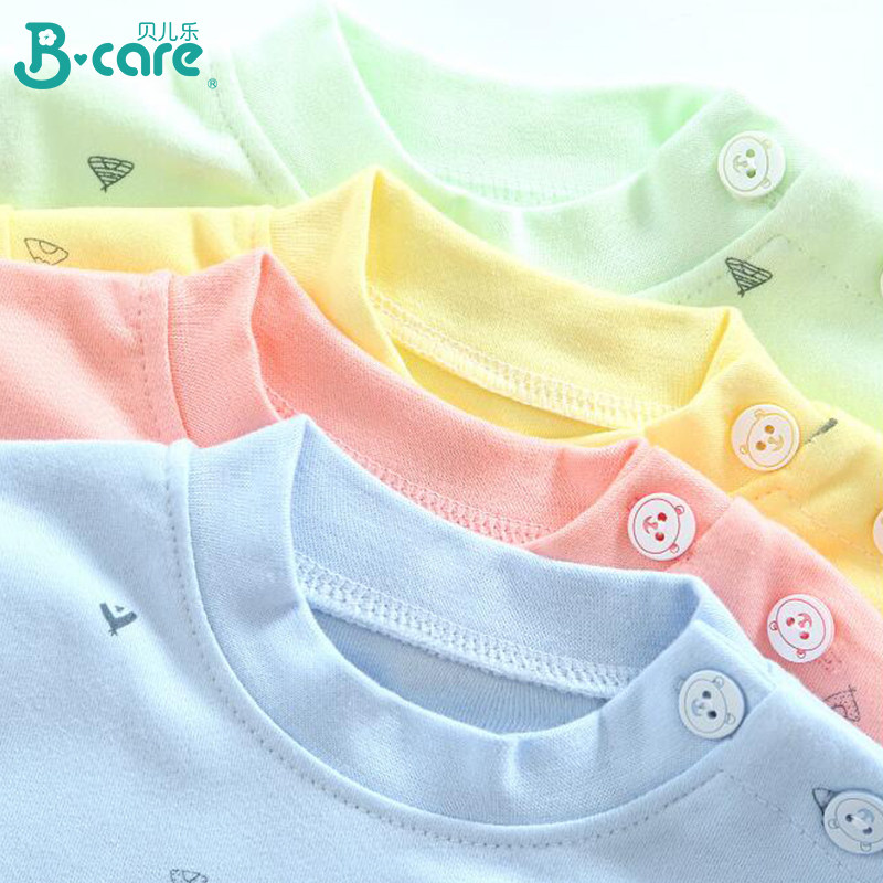 Детское летнее хлопковое нижнее белье, мультяшный комплект с круглым воротником, детский многоцветный лонгслив для новорожденных