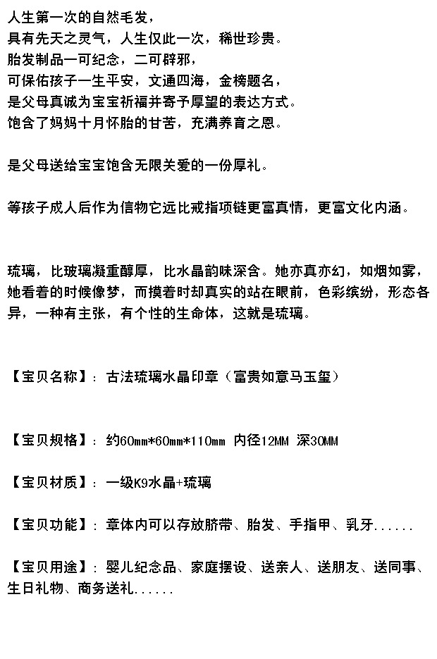 Продавец:婴儿胎毛水晶彩釉封