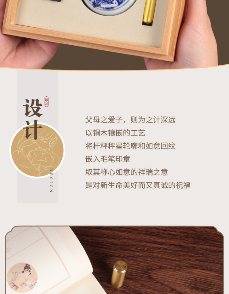 Сувенир для хранения пуповины, набор, кисть для письма ручной работы, кисть из пушковых волос, детская печать, подарочная коробка, «сделай сам», подарок на день рождения