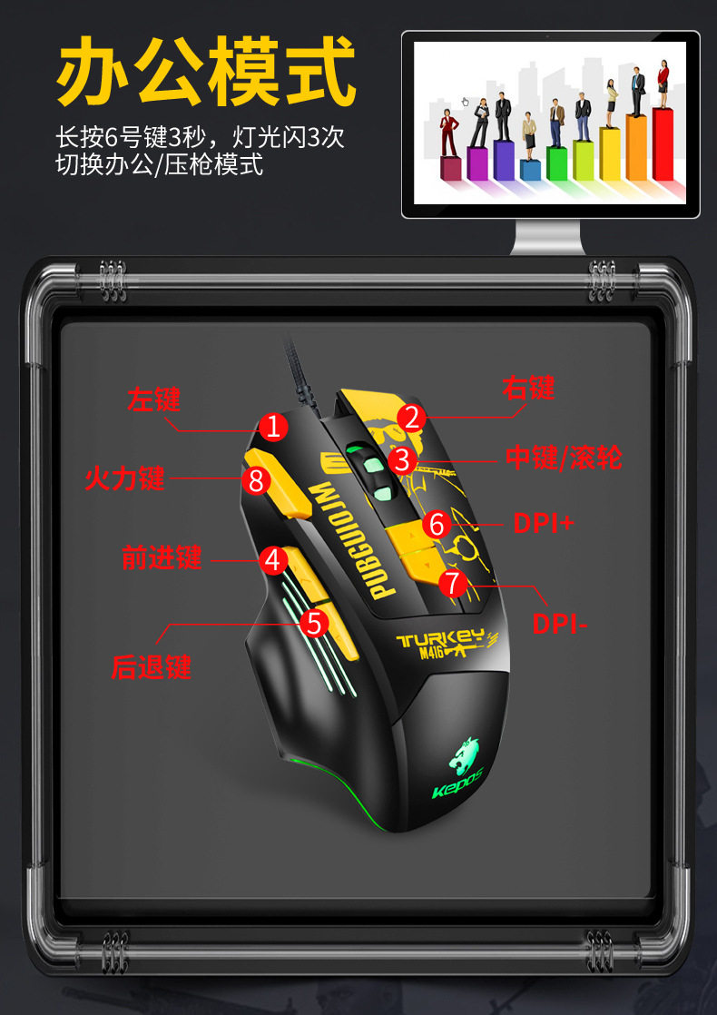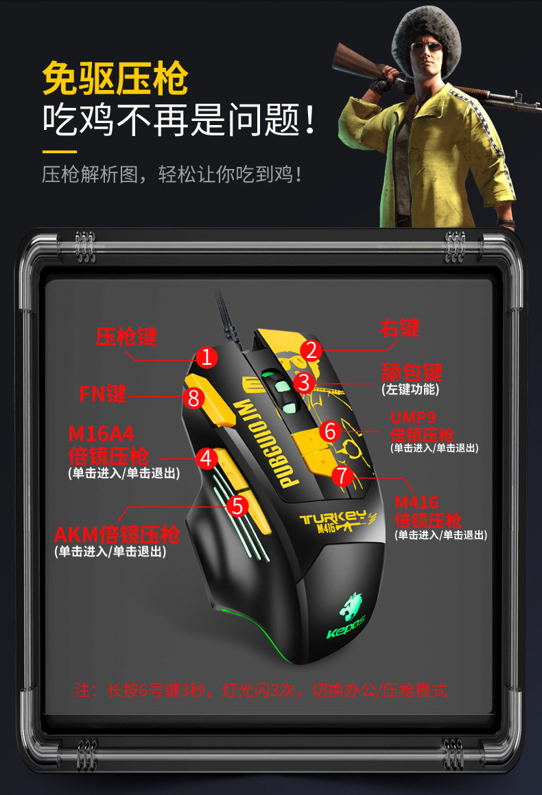 Бесплатная доставка Kepos есть куриное давление Gun Gaming Mouse USB Optical Mouse RGB8 Ключевая сеть кафе