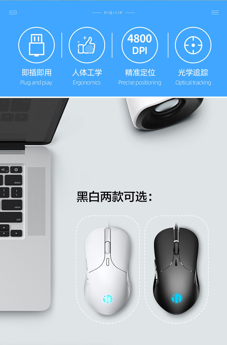 Inphic/infink b1 cable mouse mouse mouse Quiet Home Game Office RGB Light 3200DPI Universal