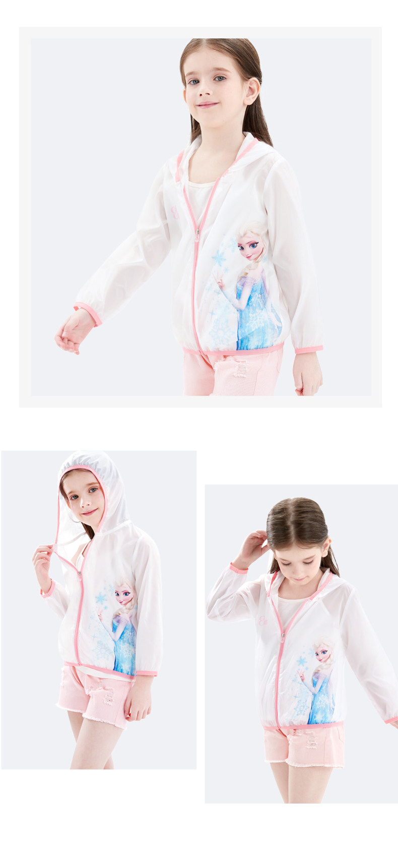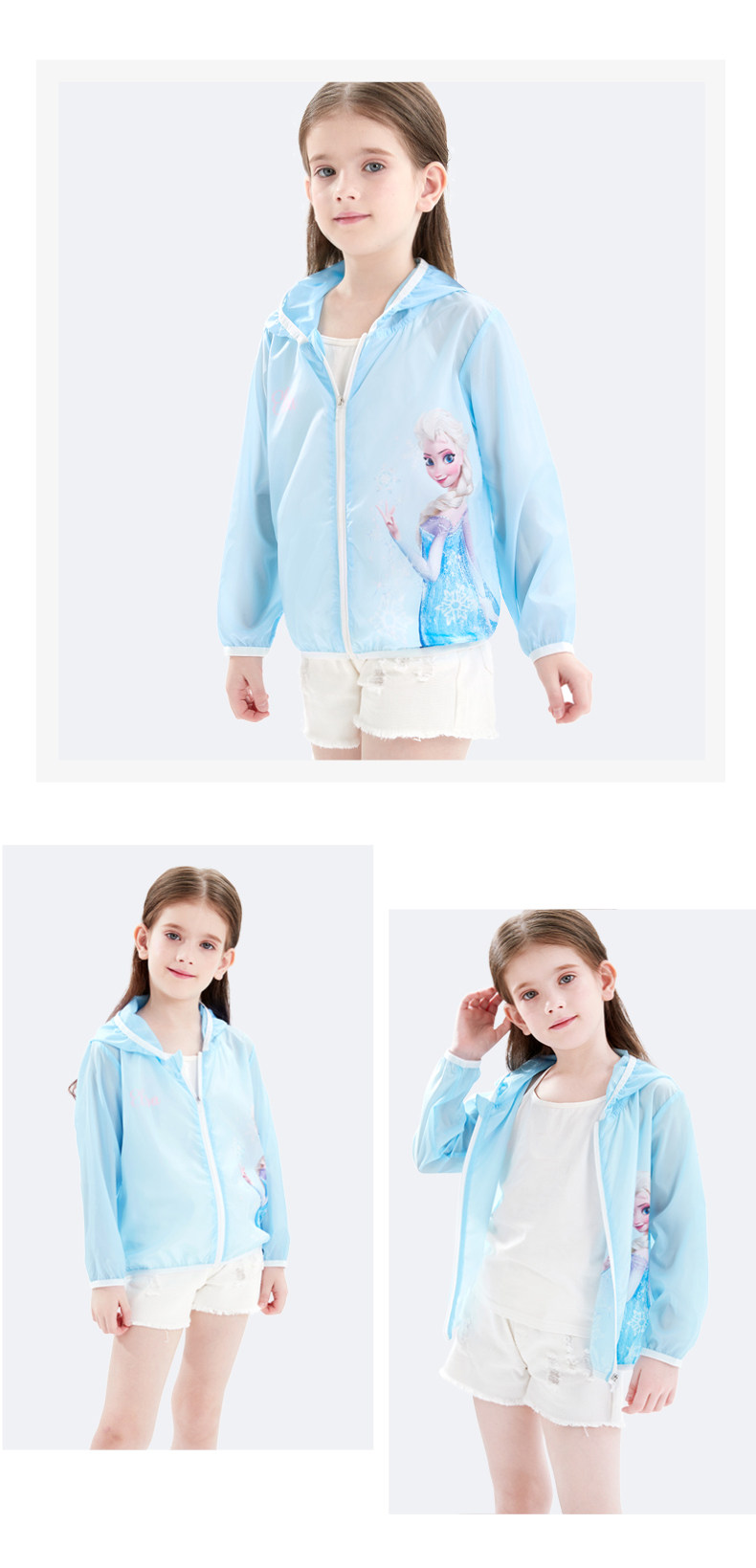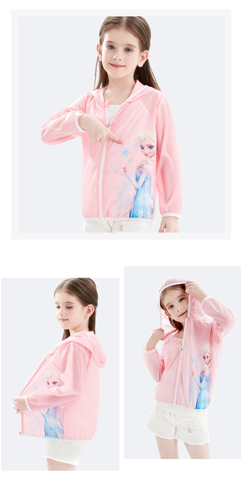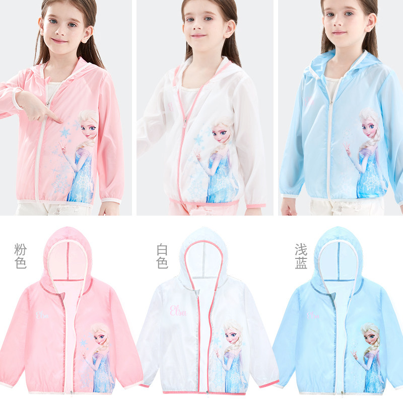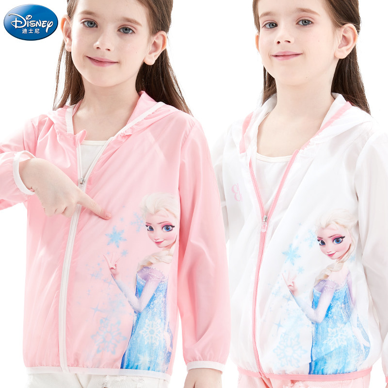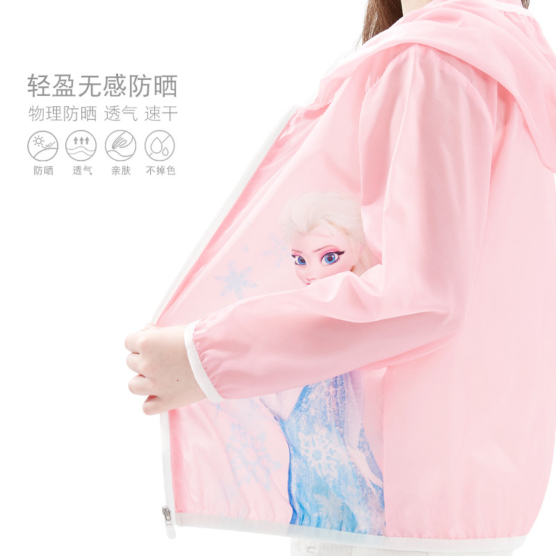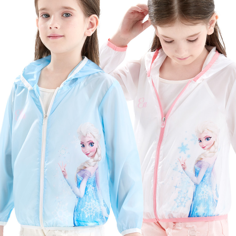 Дисней, солнцезащитный крем, легкая и тонкая одежда для защиты от солнца, кардиган с капюшоном, куртка, наряд маленькой принцессы, детская ветровка