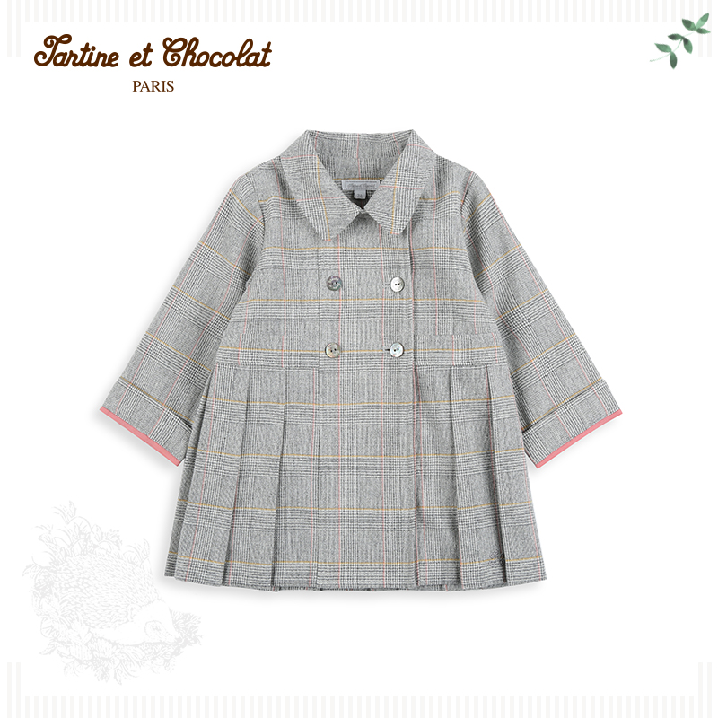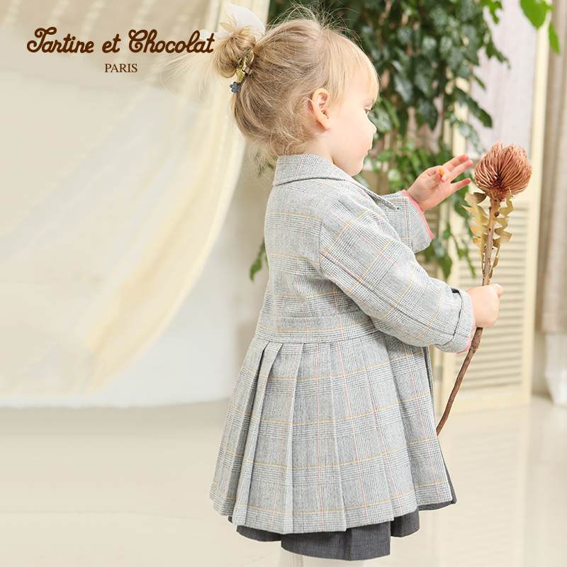 TartineTockocolat Французская шоколадная детская детская одежда Элегантная темпераментная плиссированная банкетная траншевая пальто