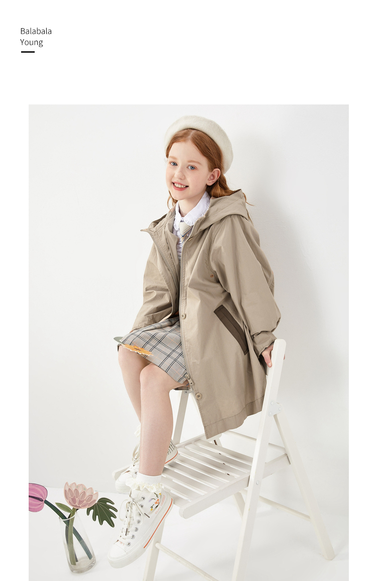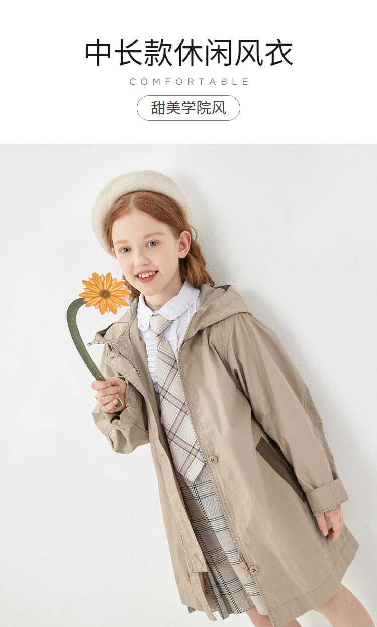 巴拉巴拉 Длинный милый плащ для отдыха, осенний, подходит для подростков, средней длины, в западном стиле
