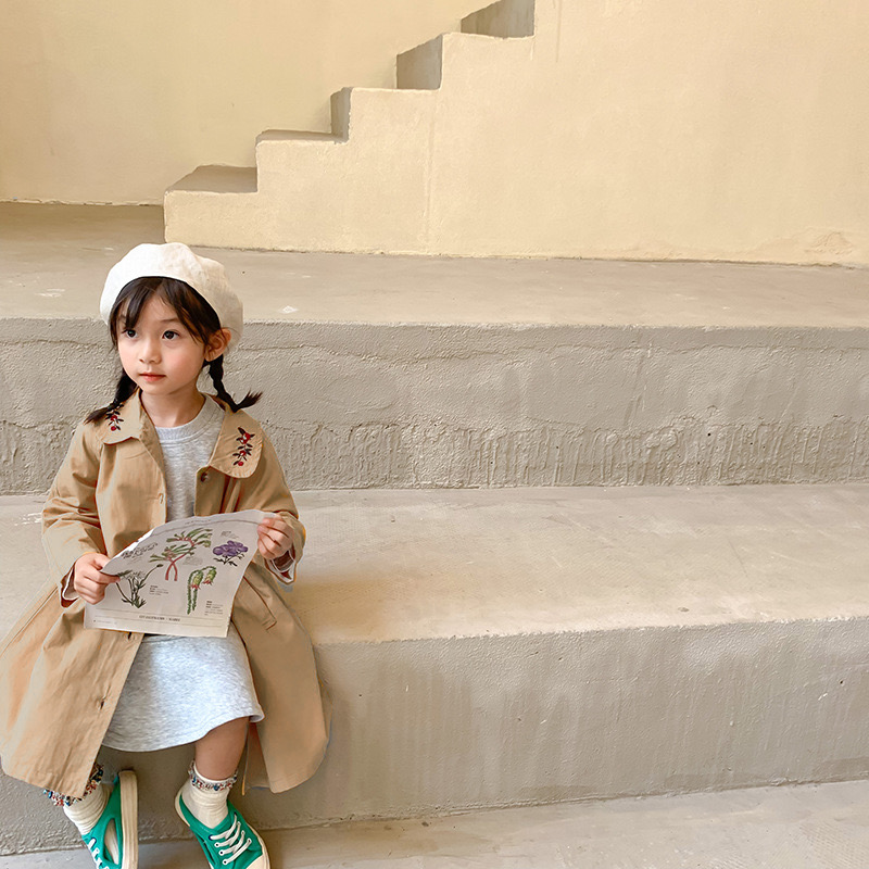 Осенняя длинная хлопковая куртка, в корейском стиле, с вышивкой, подходит для подростков, средней длины