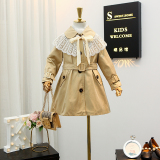 Осенний детский плащ, кружевная демисезонная длинная куртка, средней длины, в западном стиле, детская одежда