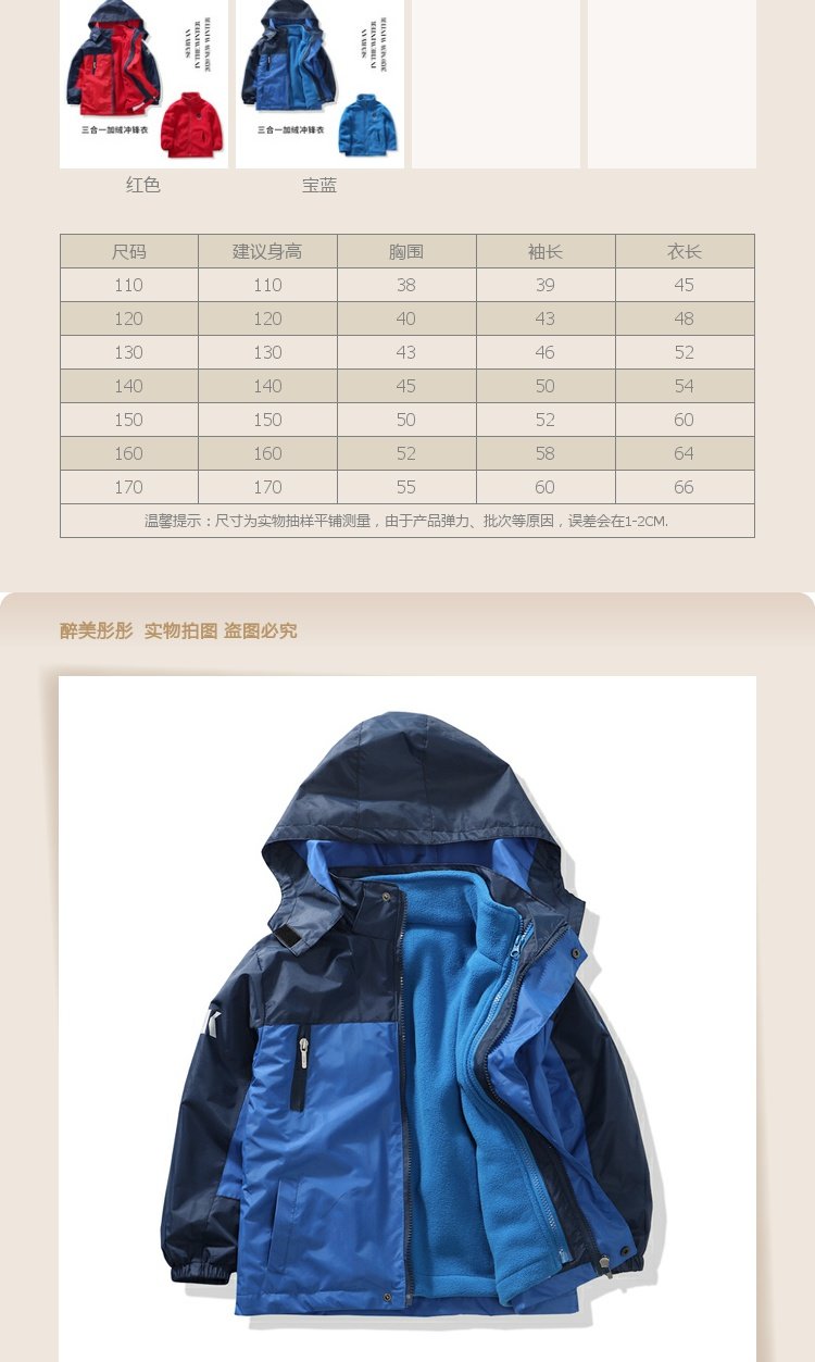 Куртка для мальчиков, съемный вкладыш, детский плащ, «три в одном», детская одежда