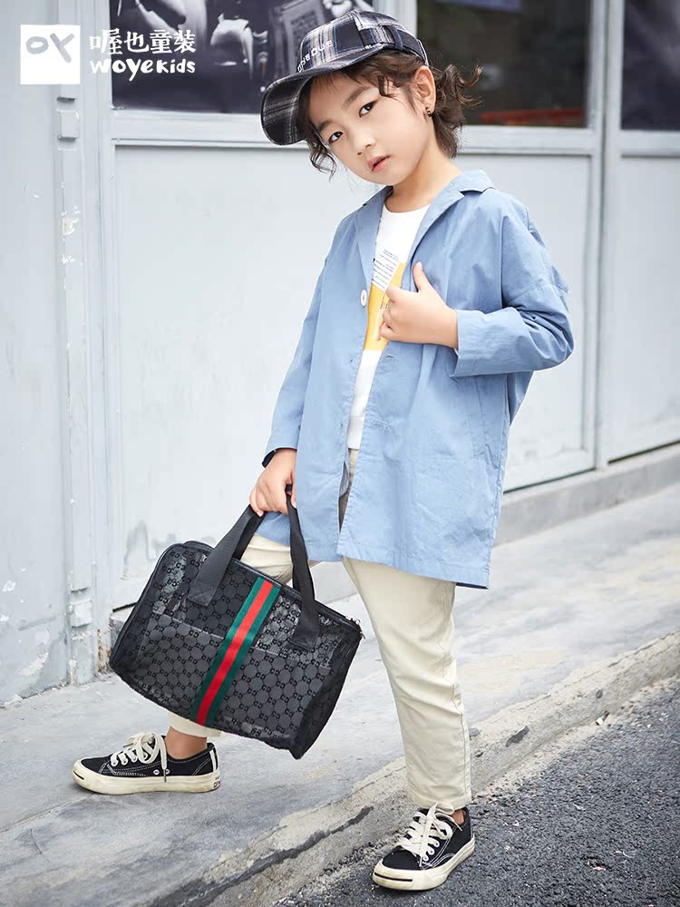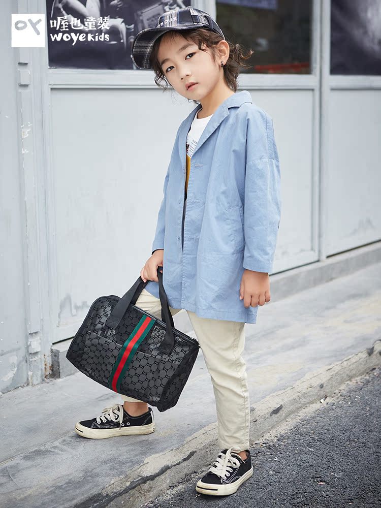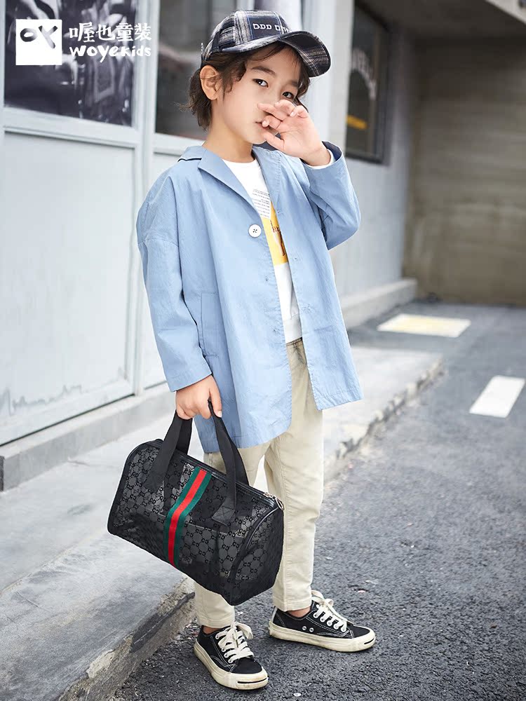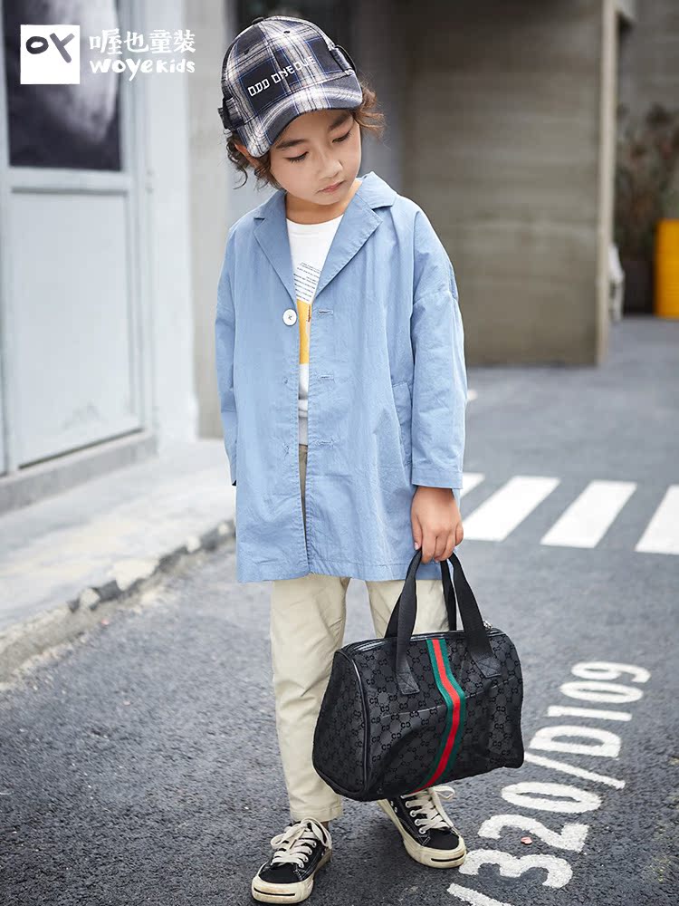 喔也 Весенний плащ для мальчиков, дизайнерская куртка, детская одежда, свободный крой