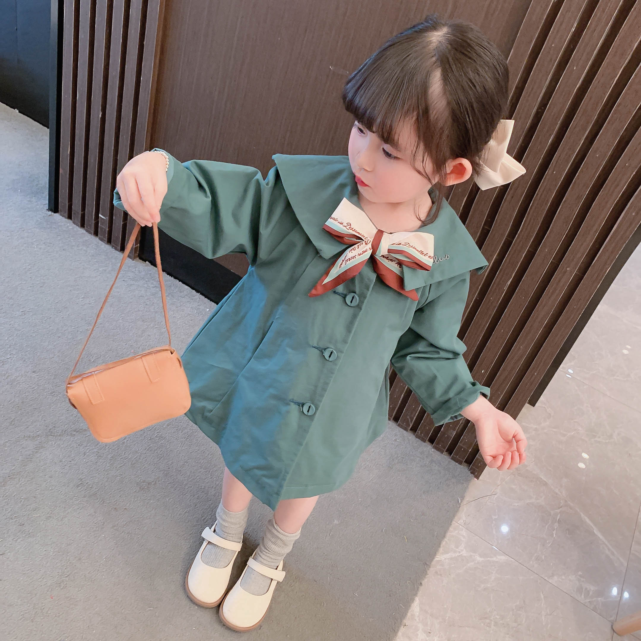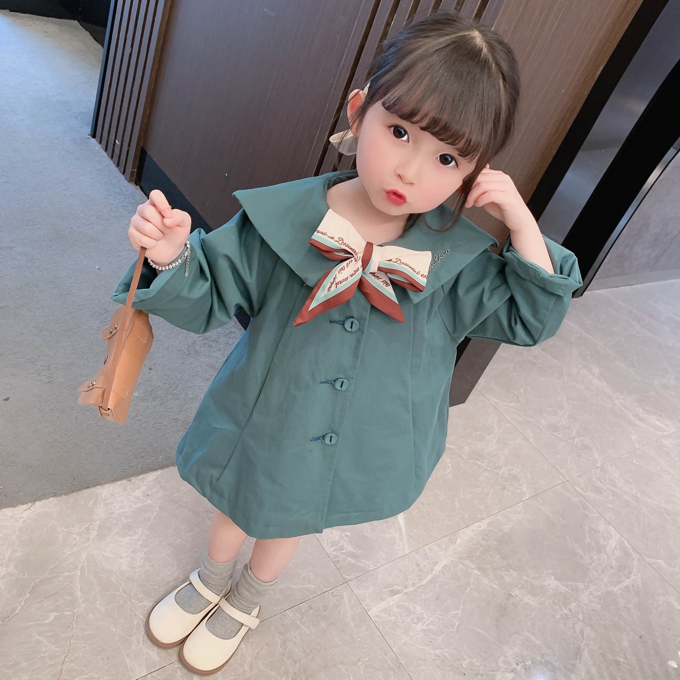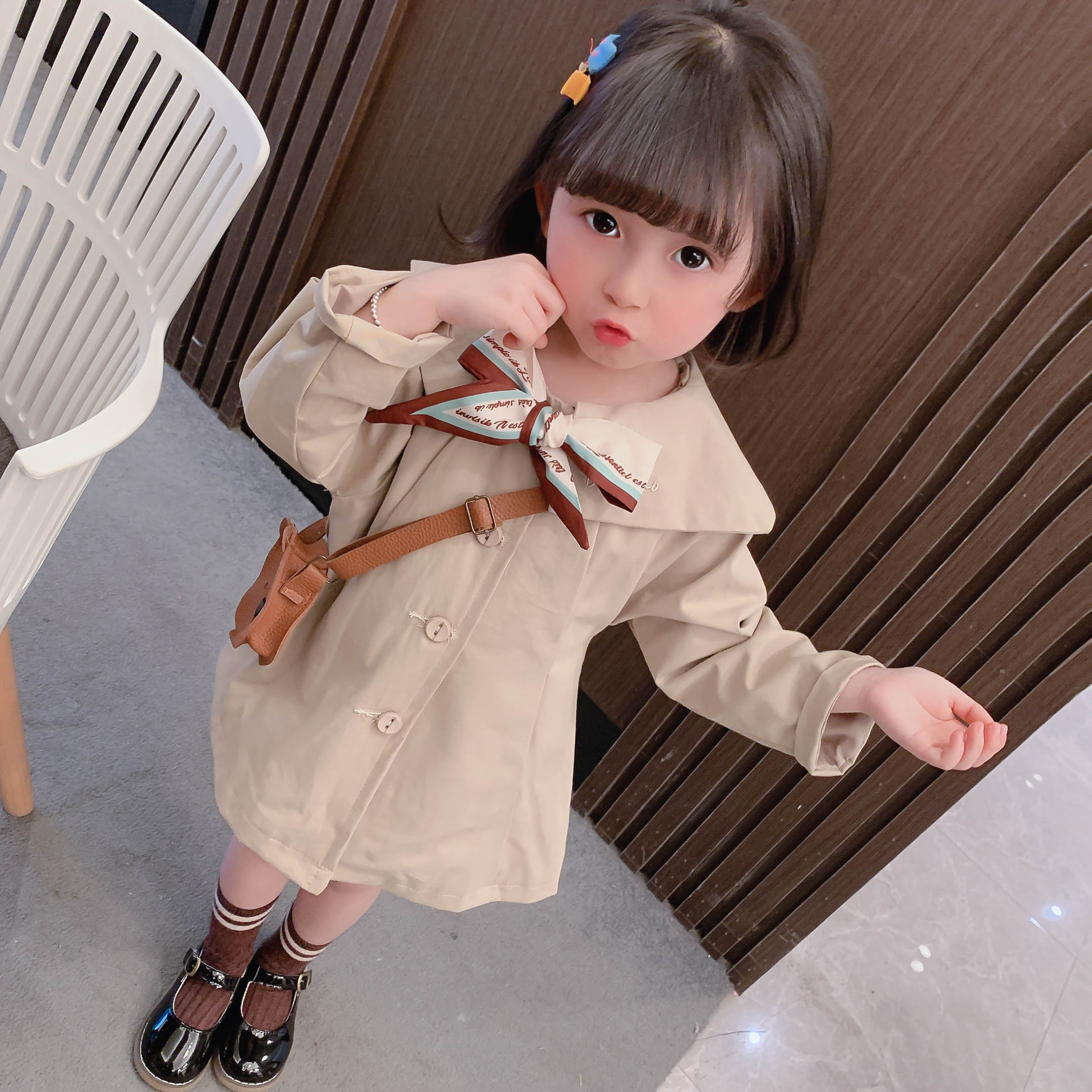 Осенний плащ, детское пальто для девочек, весенняя куртка, коллекция 2021, средней длины, в западном стиле
