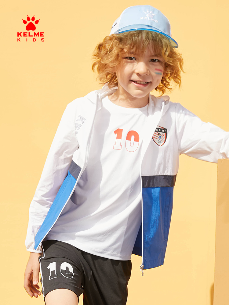 KELME Куртка для мальчиков с капюшоном, комплект, ветровка, коллекция 2021, подходит для подростков, защита от солнца