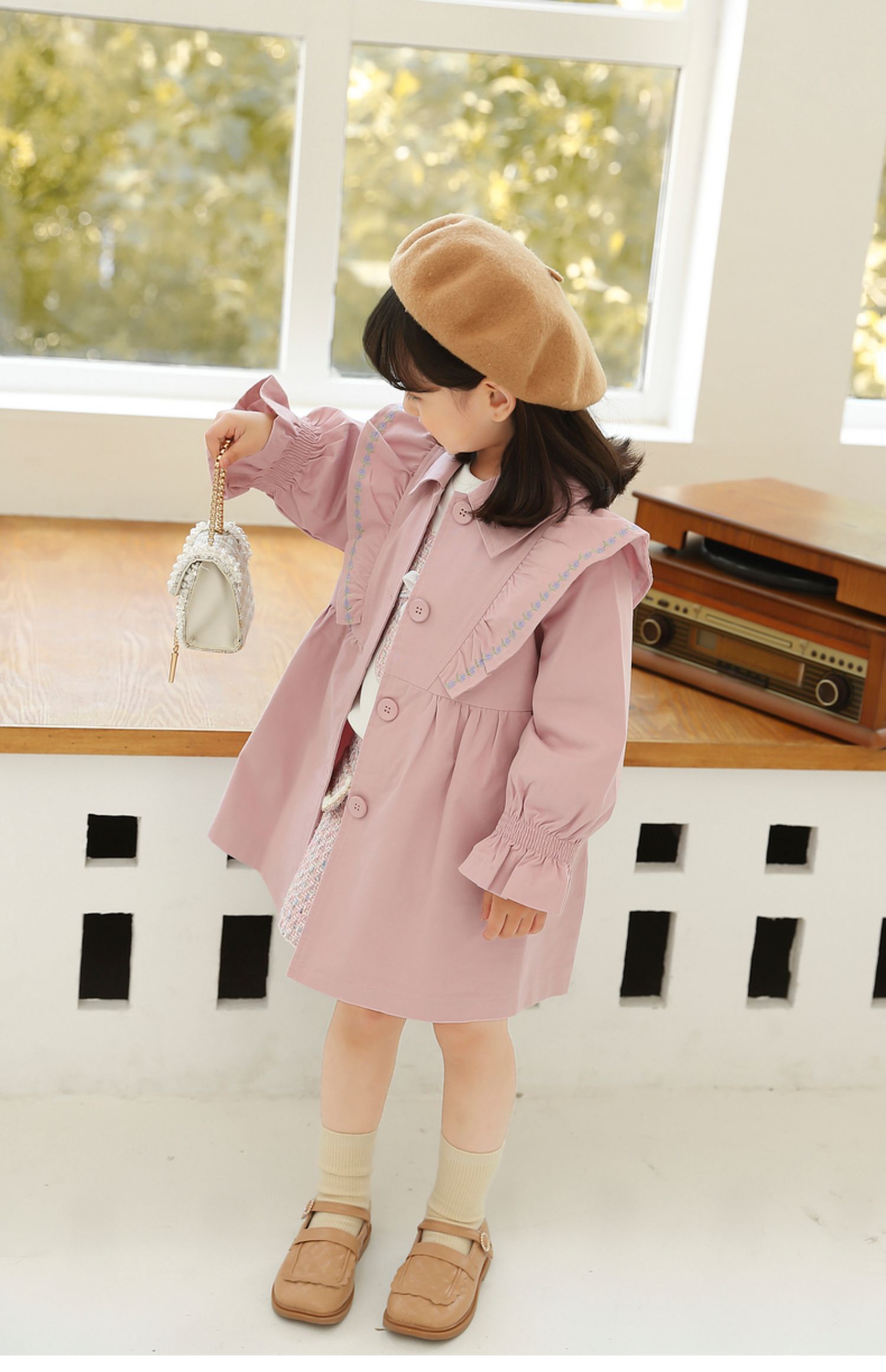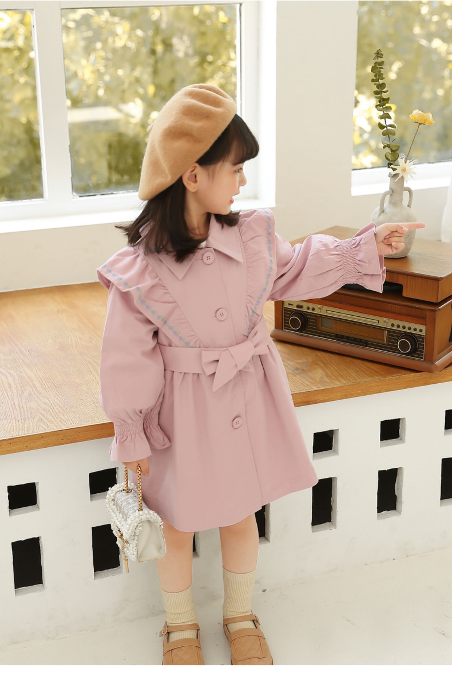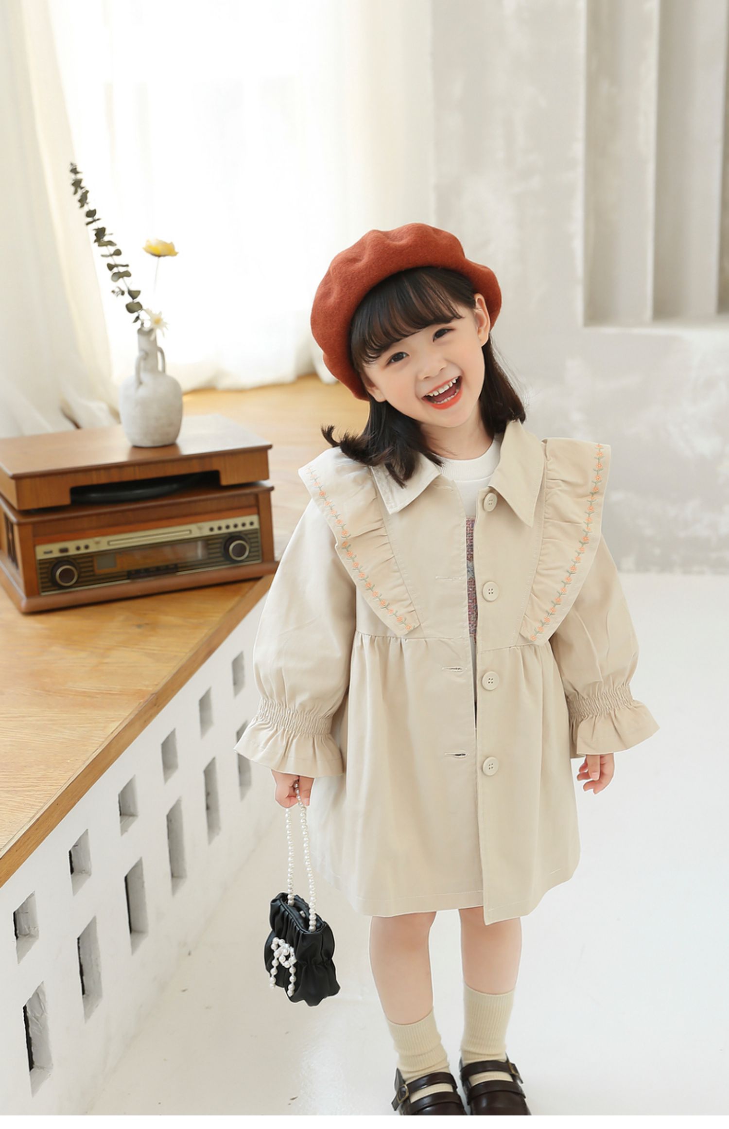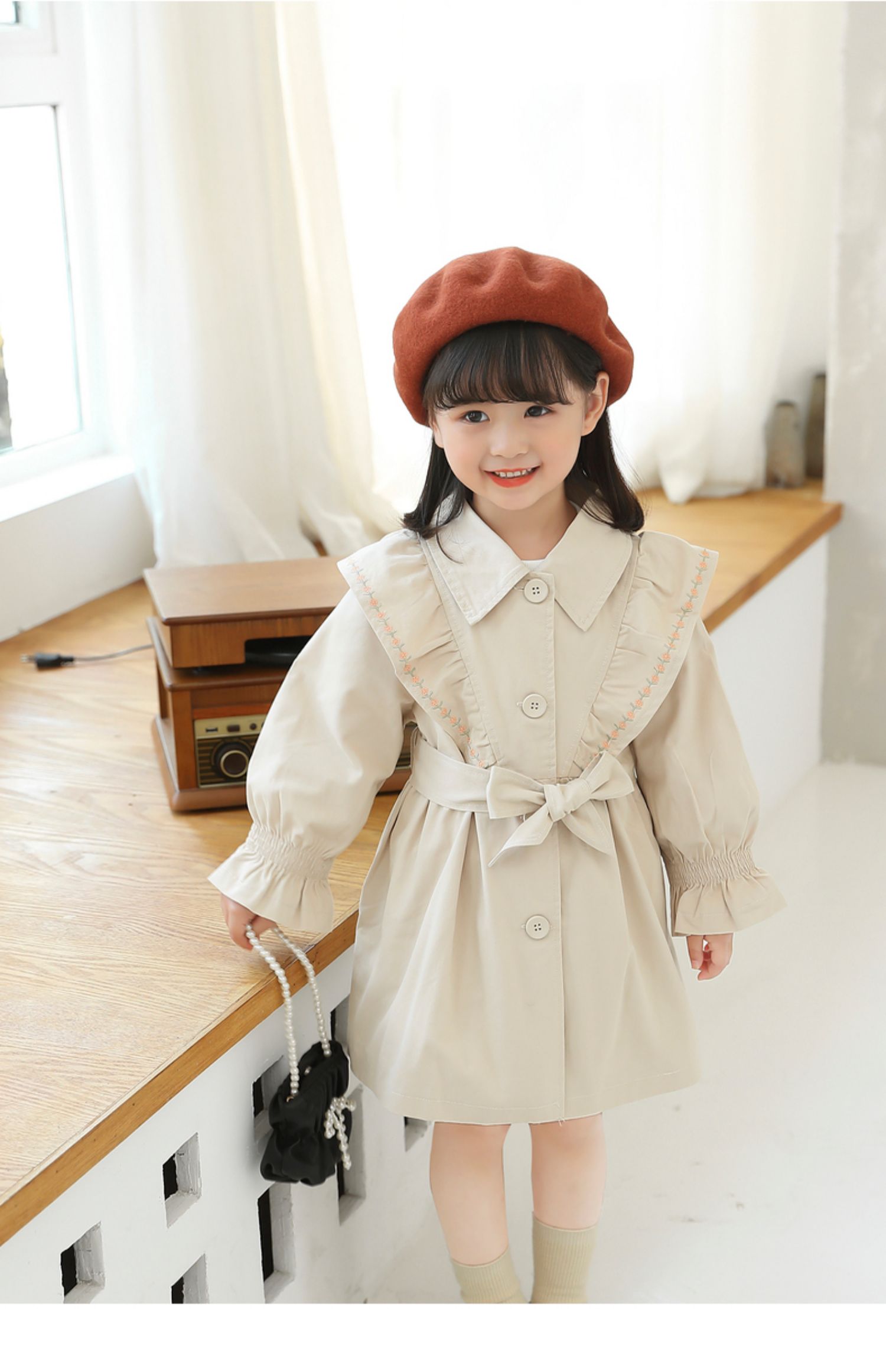 Осенний плащ для девочек, длинная детская куртка, в корейском стиле, коллекция 2021, средней длины, в западном стиле, с вышивкой