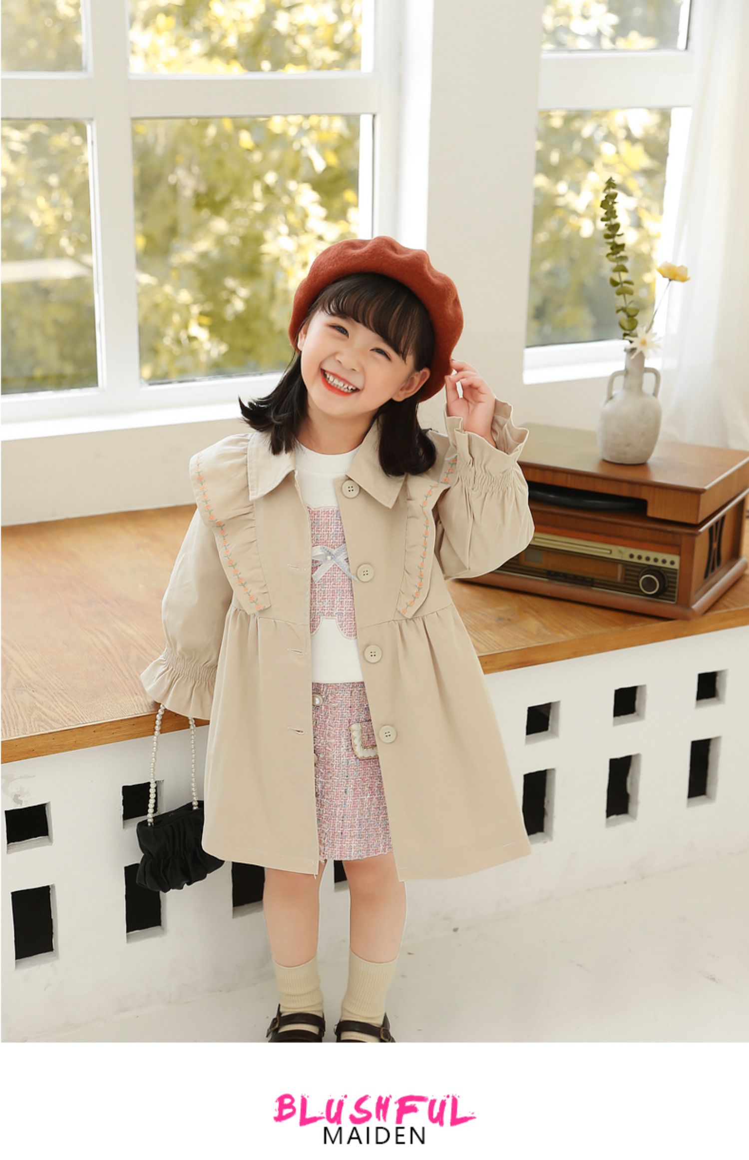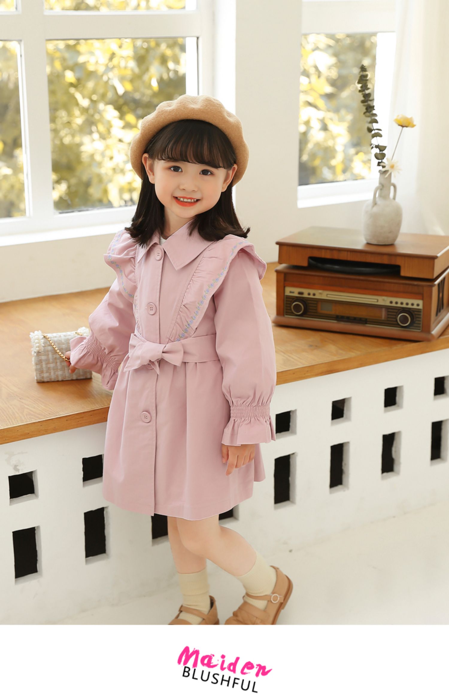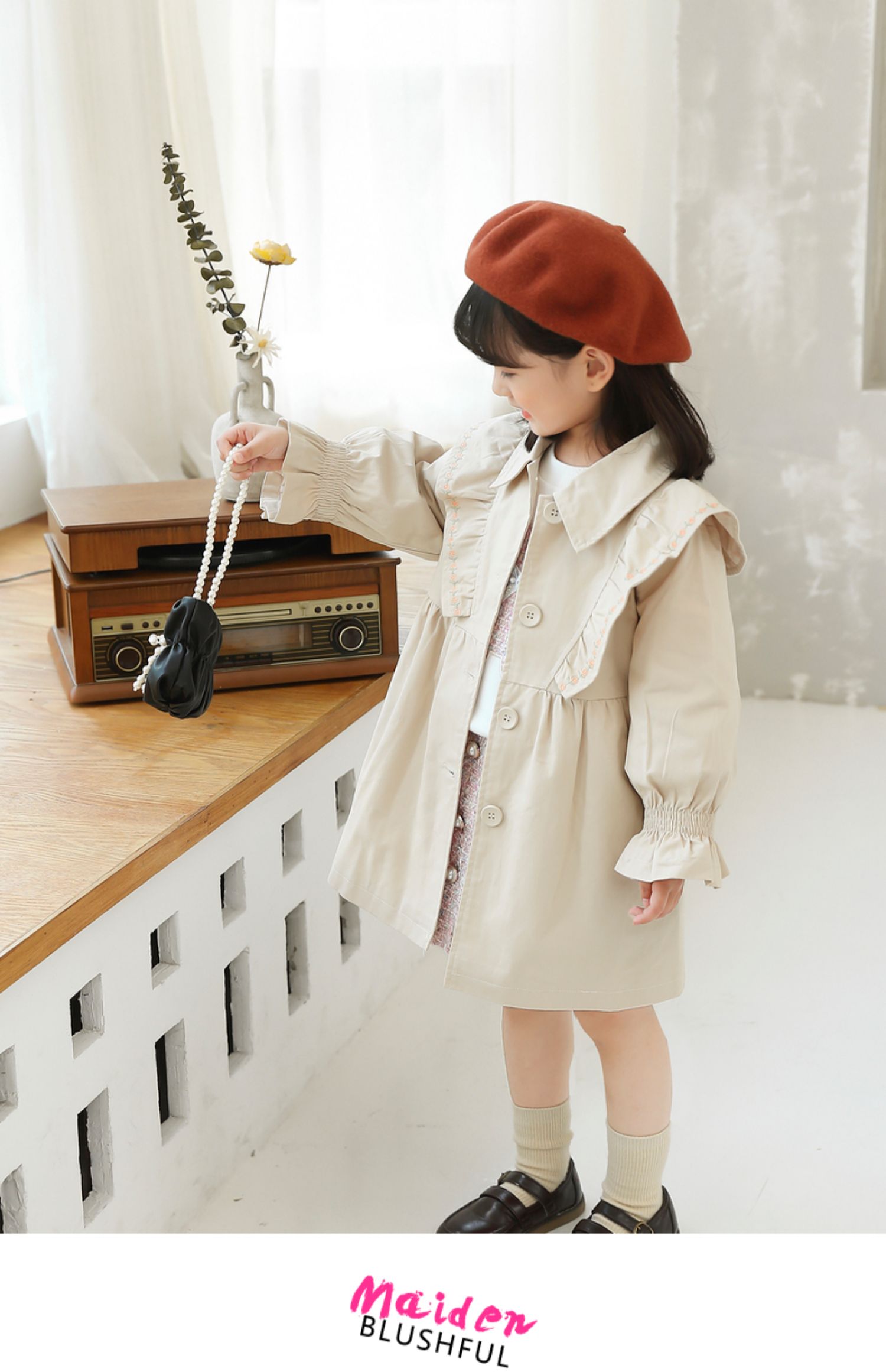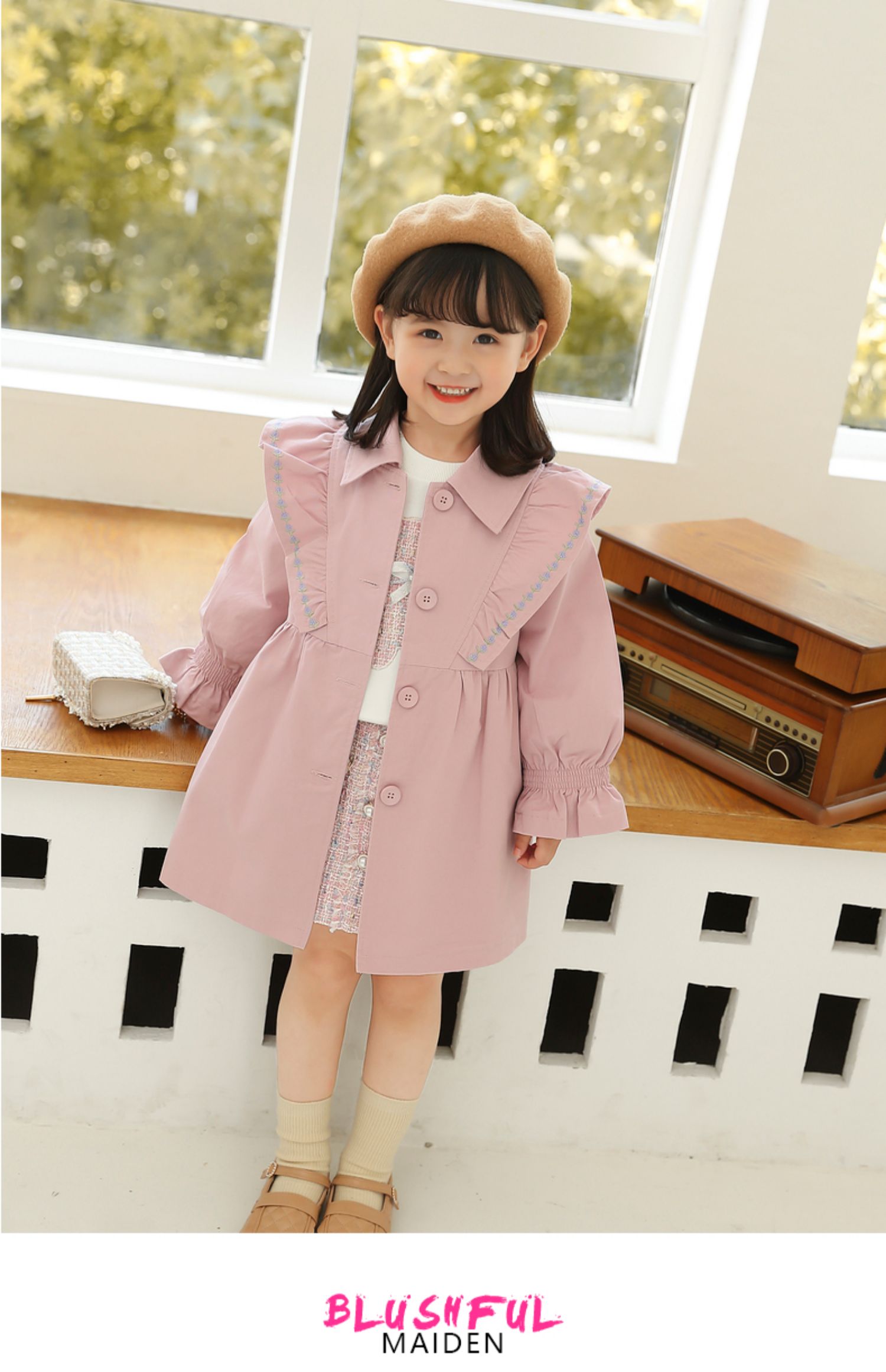 Осенний плащ для девочек, длинная детская куртка, в корейском стиле, коллекция 2021, средней длины, в западном стиле, с вышивкой