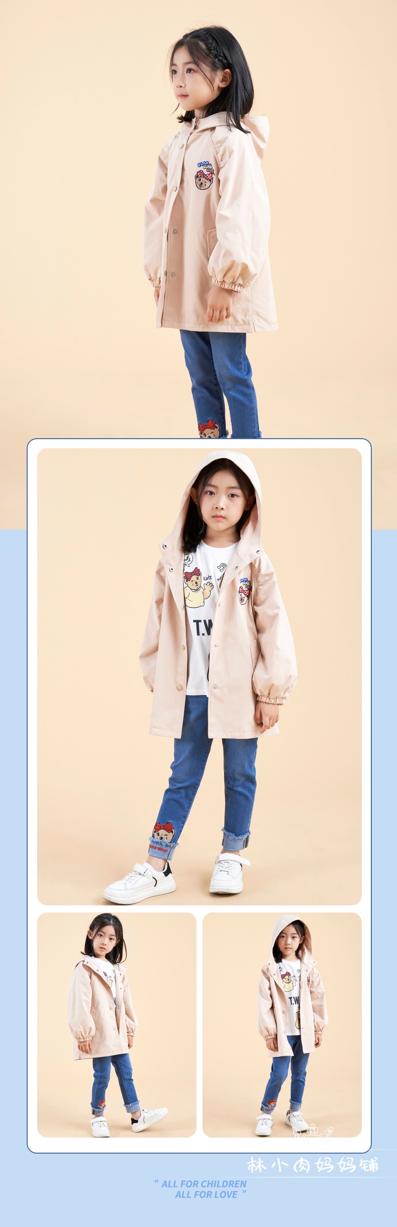 Плащ, коллекция 2021, осенний, с медвежатами, детская одежда