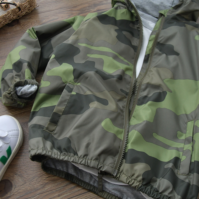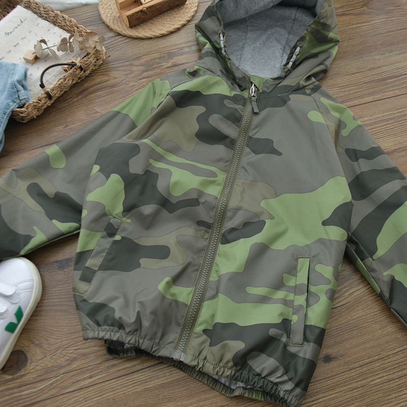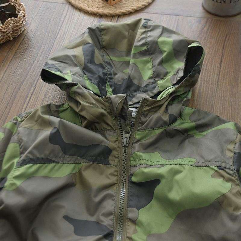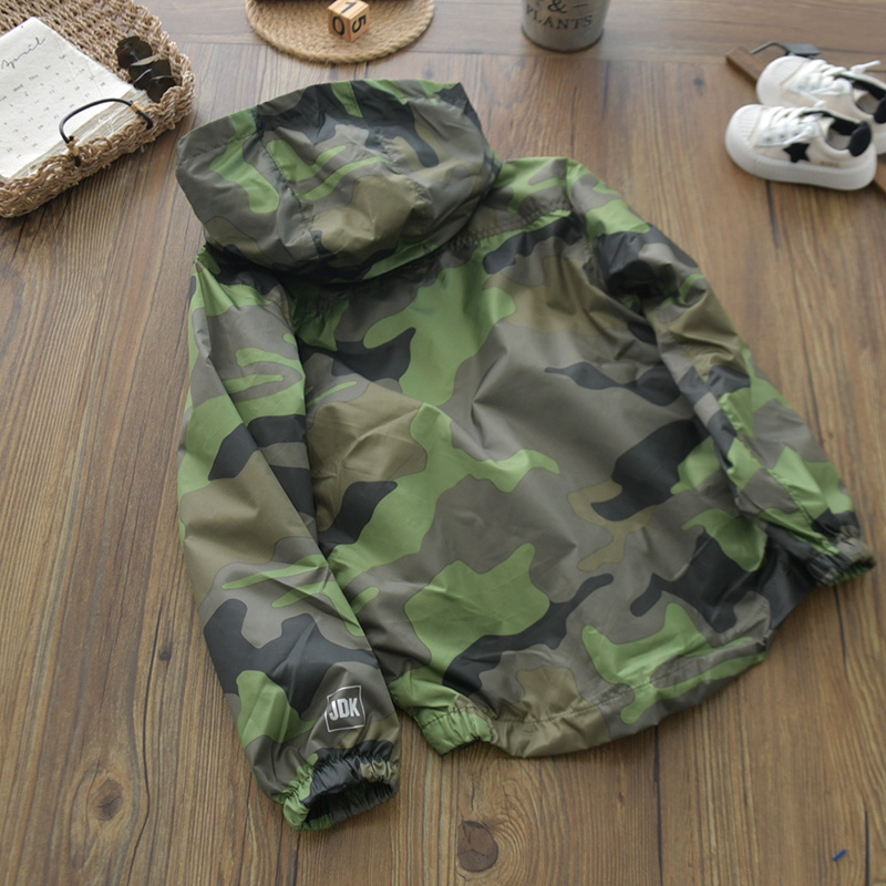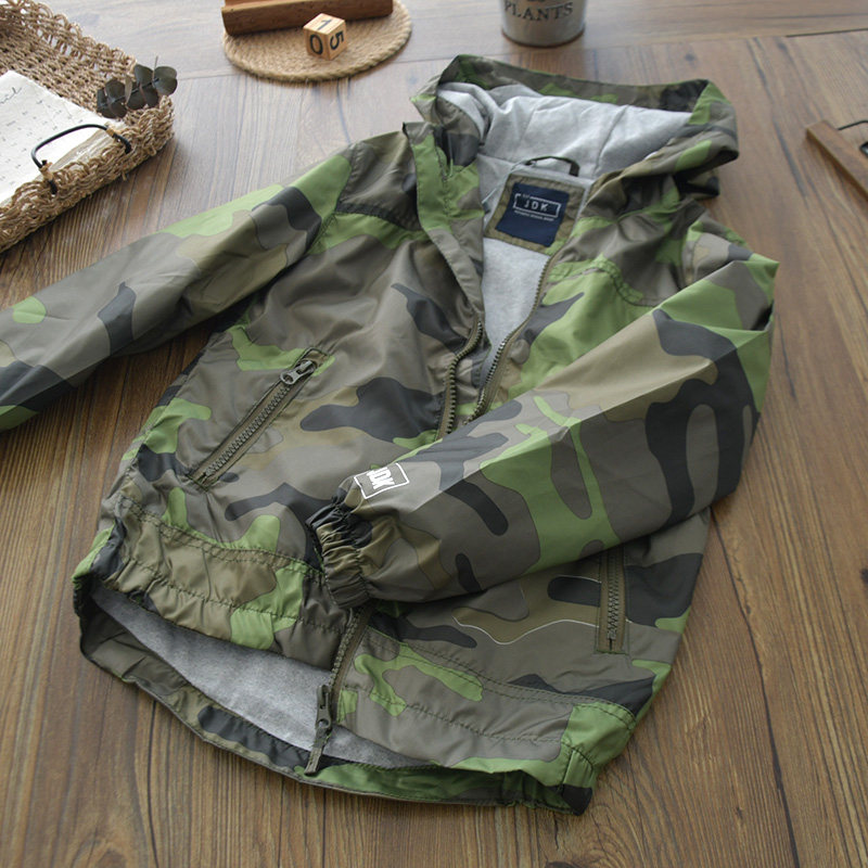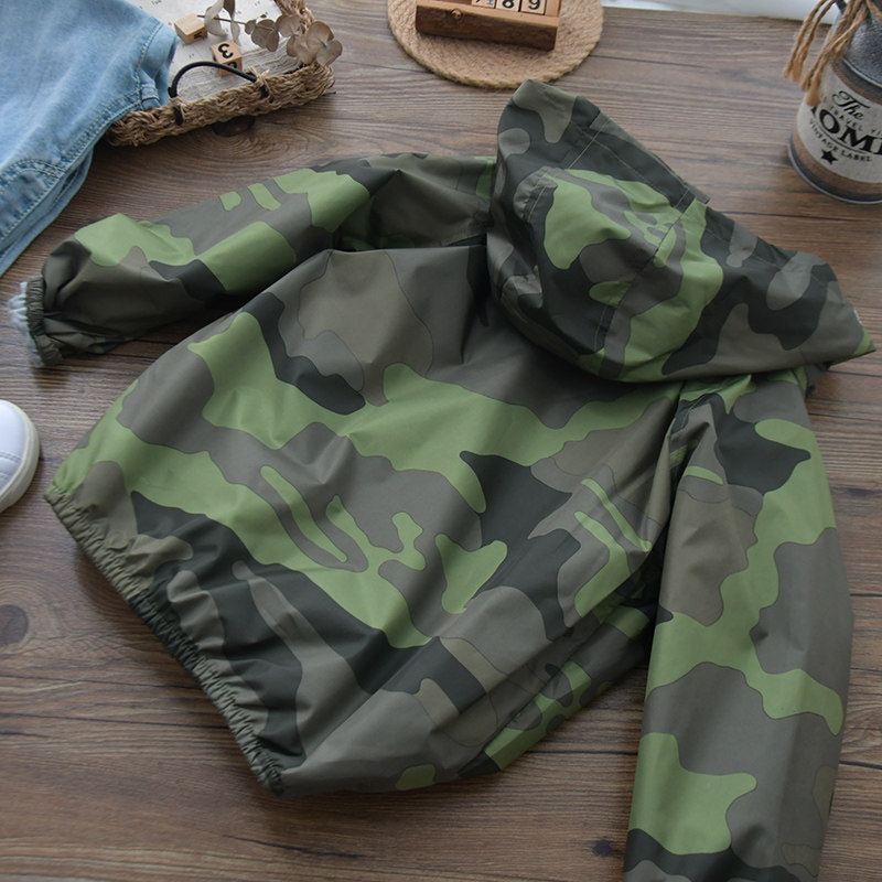 Детский камуфляжный тонкий плащ для мальчиков для отдыха, куртка с капюшоном с молнией, европейский стиль, детская одежда