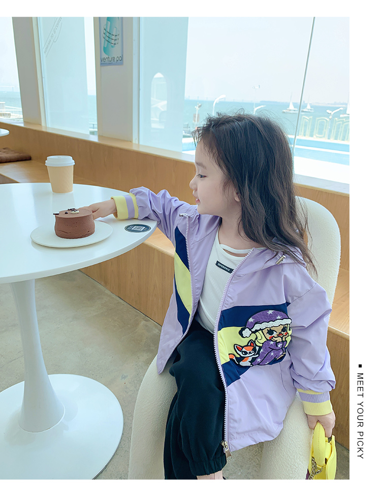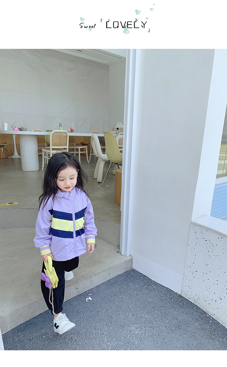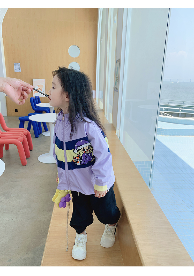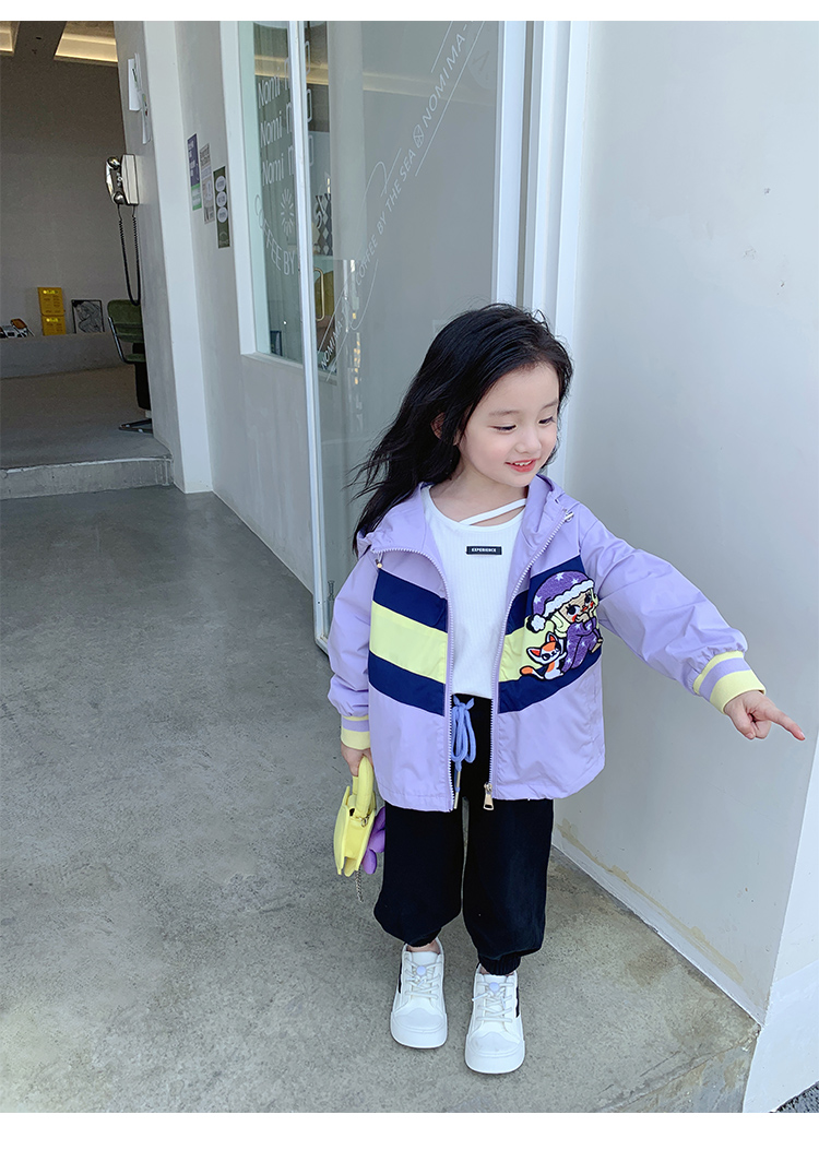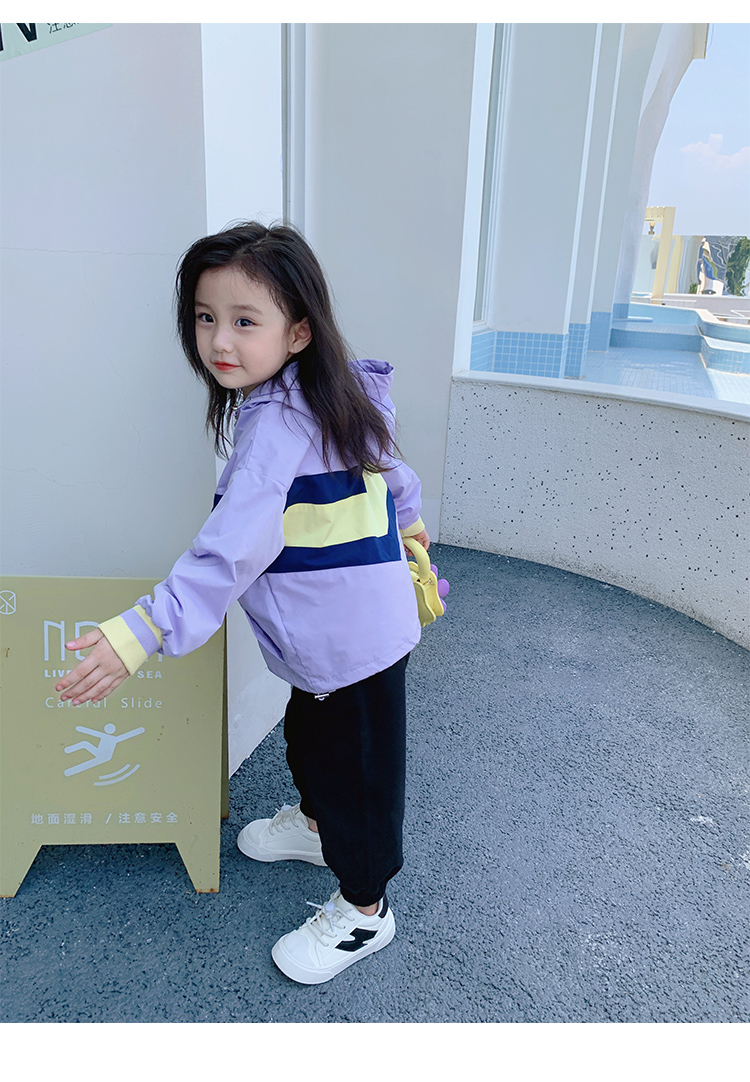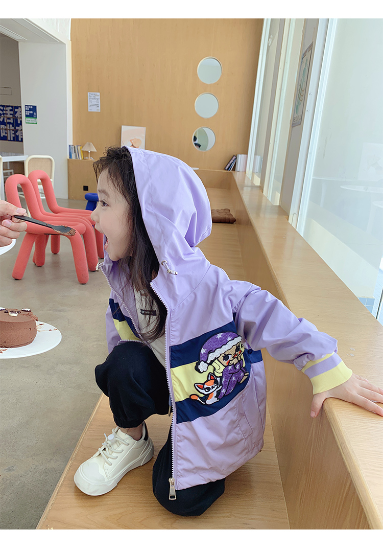 Тонкий осенний плащ, осенняя детская сиреневая куртка с капюшоном для отдыха