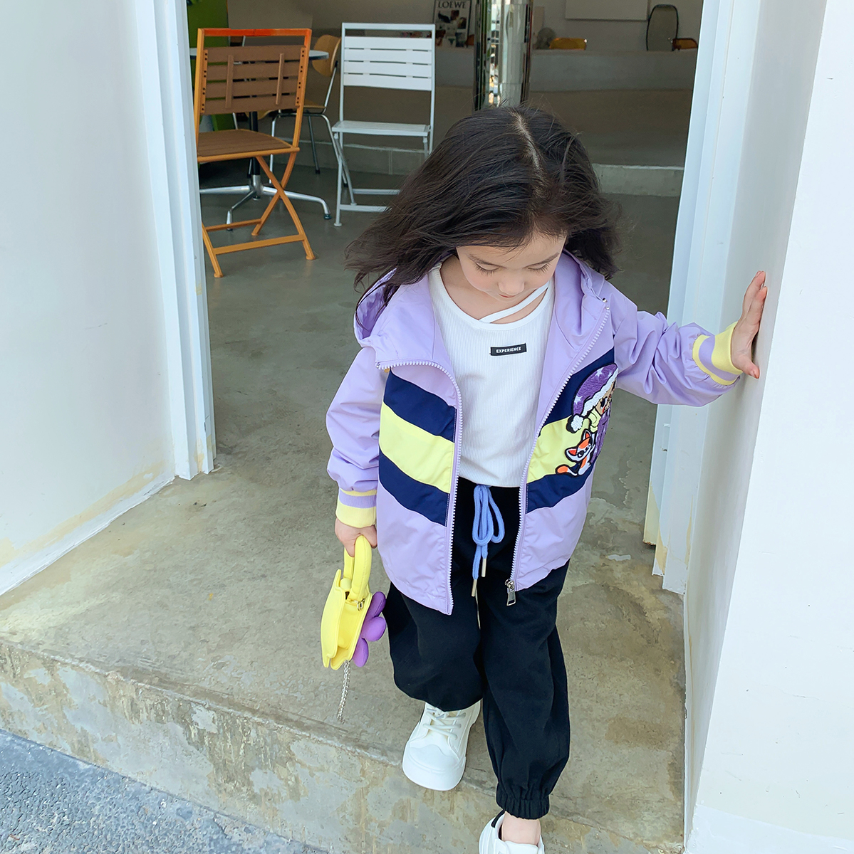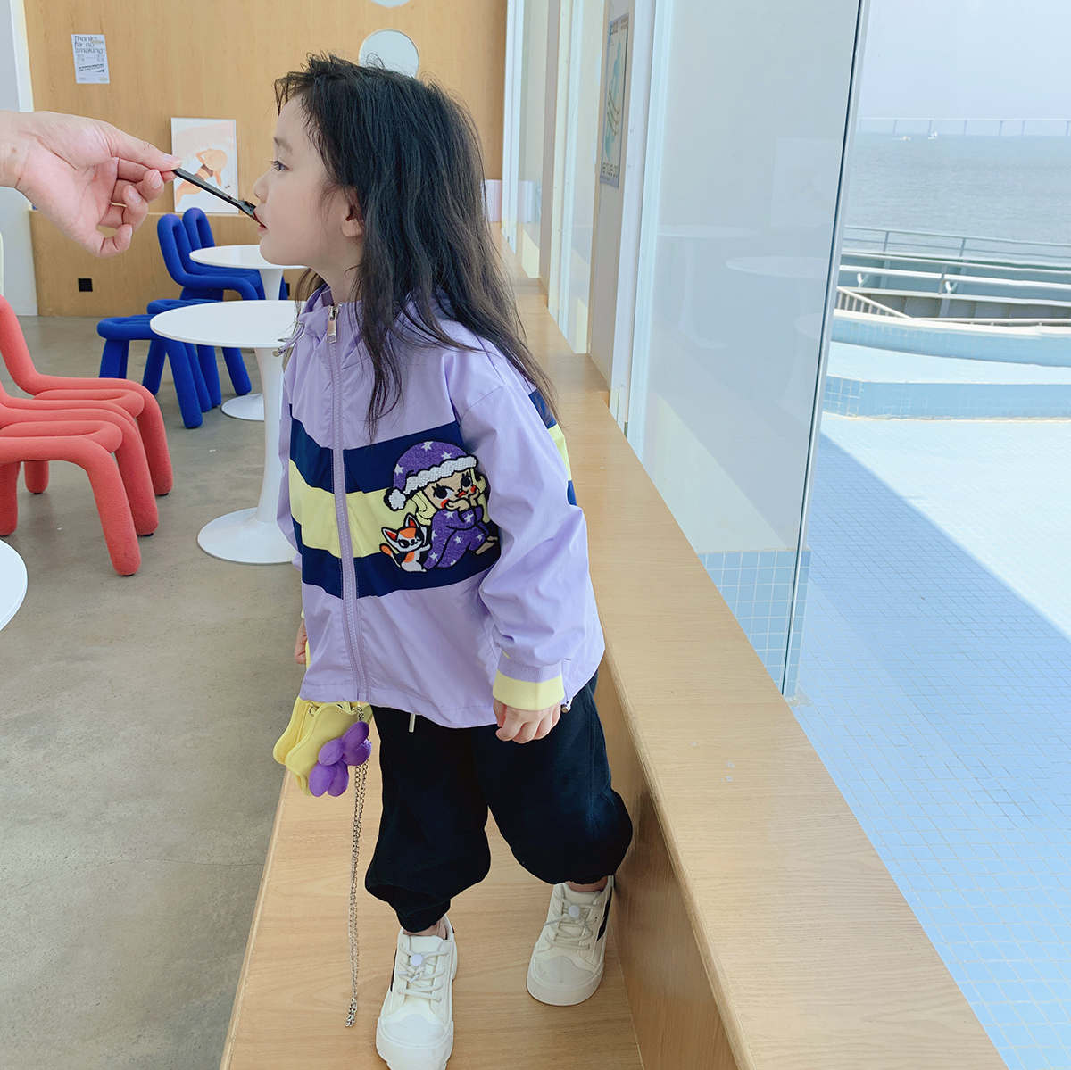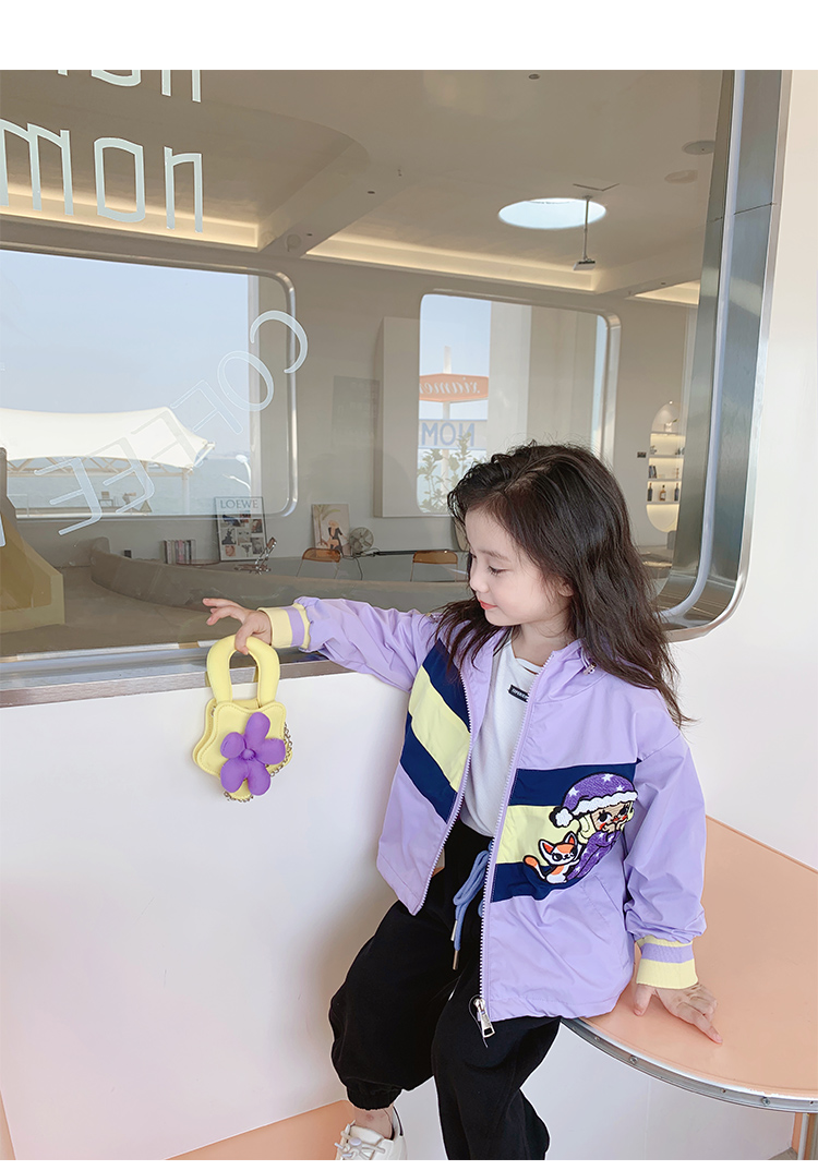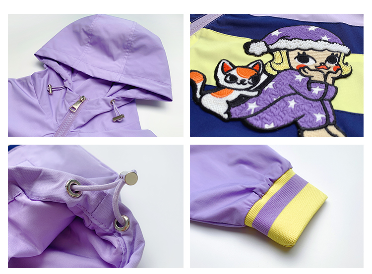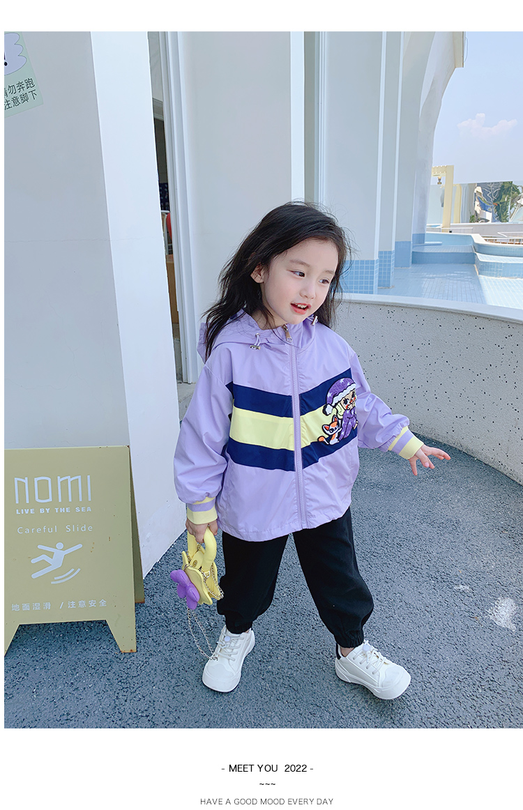Тонкий осенний плащ, осенняя детская сиреневая куртка с капюшоном для отдыха