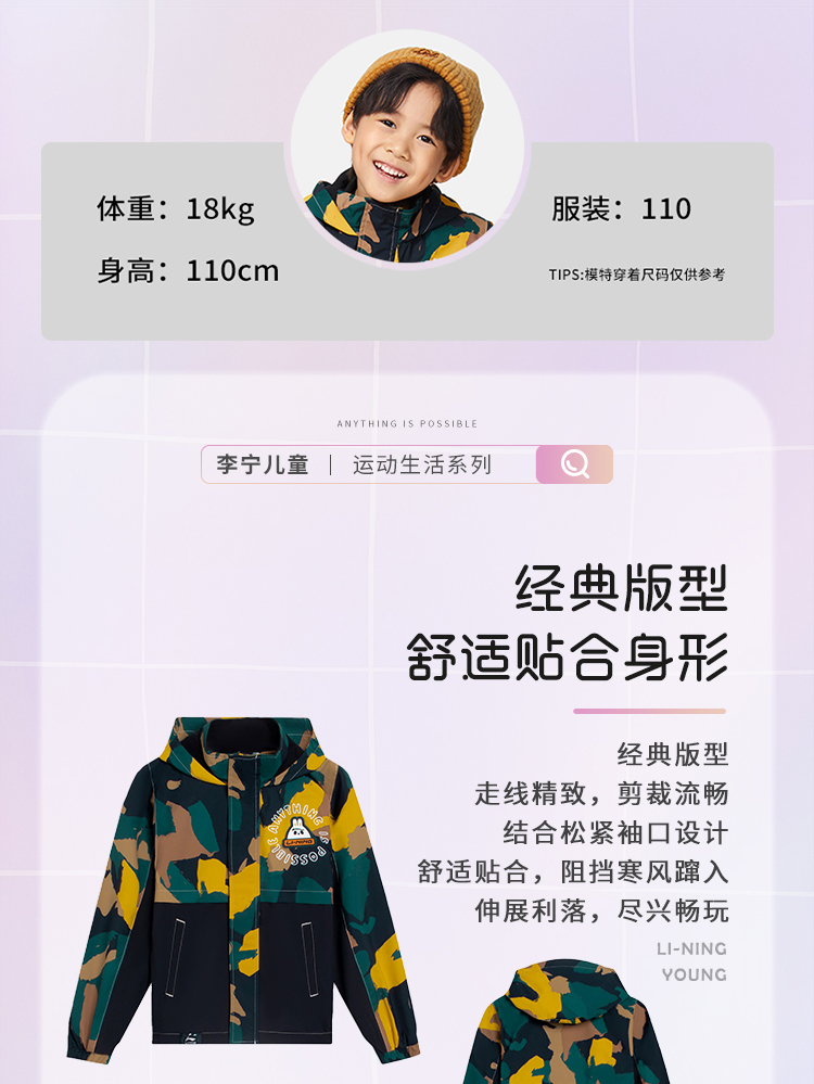 Li Ning, плащ, спортивный кардиган, лонгслив с капюшоном, зимний спортивный костюм, детская одежда