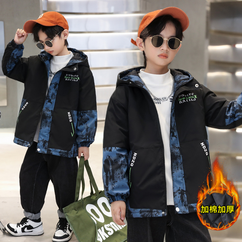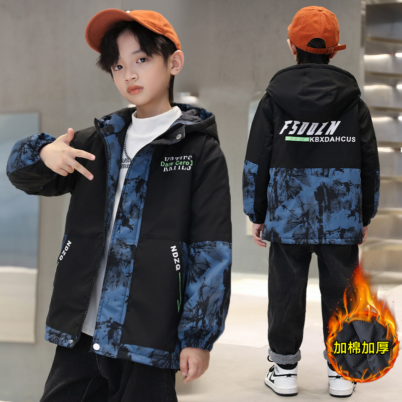Стеганая куртка для мальчиков, камуфляжный плащ, стеганый хлопковый пуховик для отдыха, осенняя, в западном стиле, подходит для подростков
