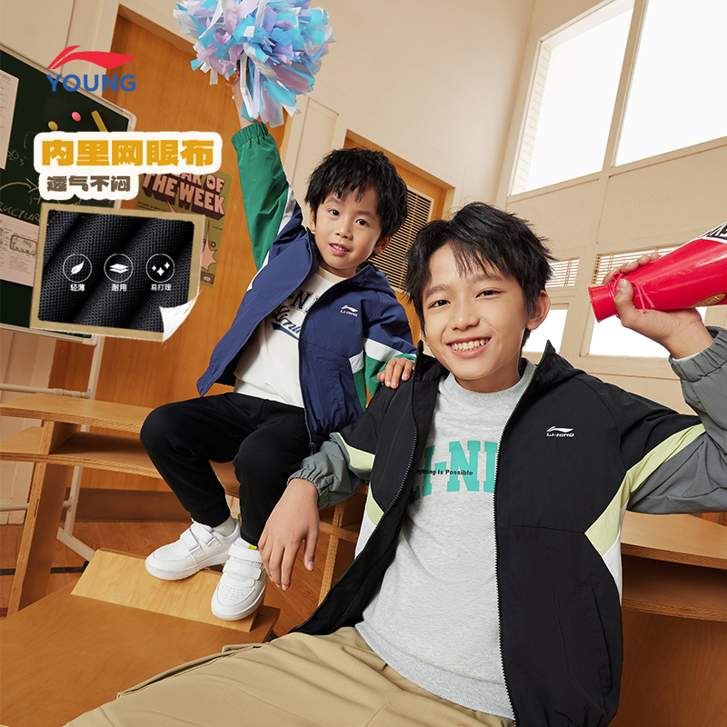 Li Ning, плащ подходит для мужчин и женщин, спортивный кардиган, лонгслив с капюшоном, спортивный костюм, куртка, детская одежда, подходит для подростков