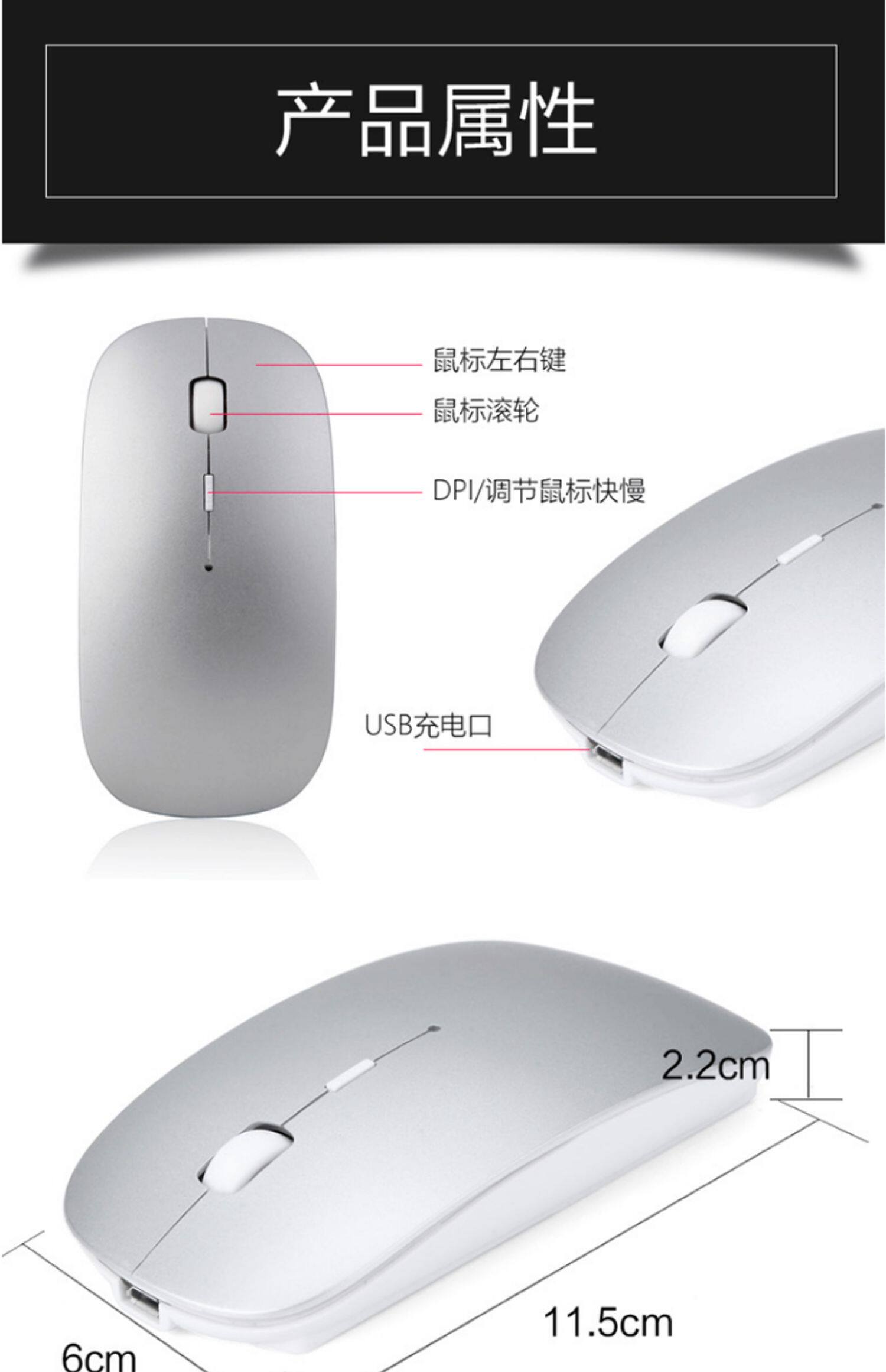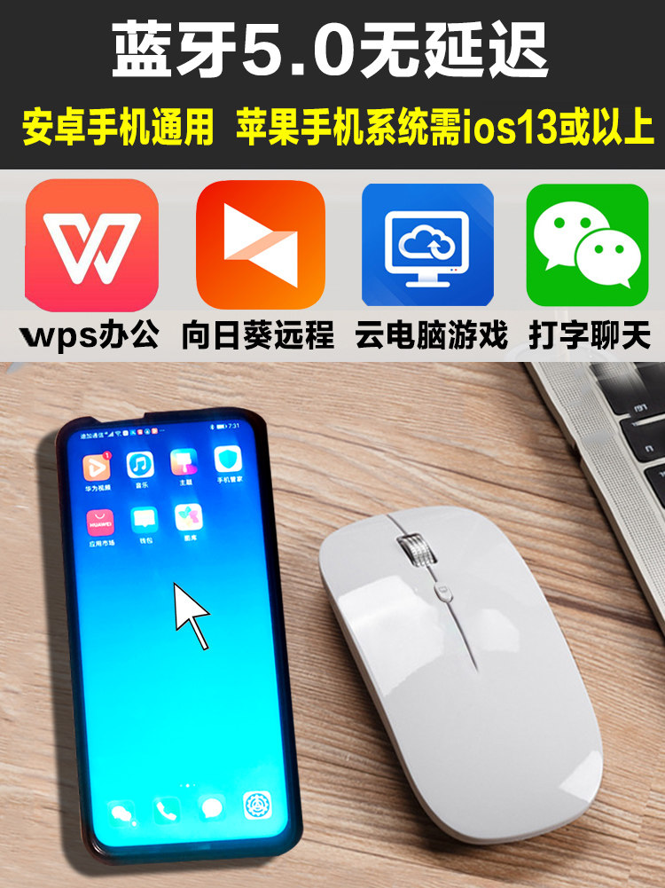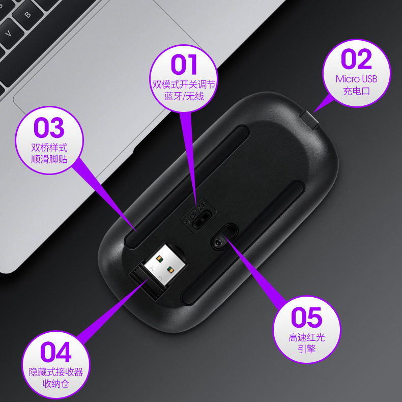 Перезаряжаемая мышка с зарядкой, беззвучный мобильный телефон, ноутбук, bluetooth, андроид