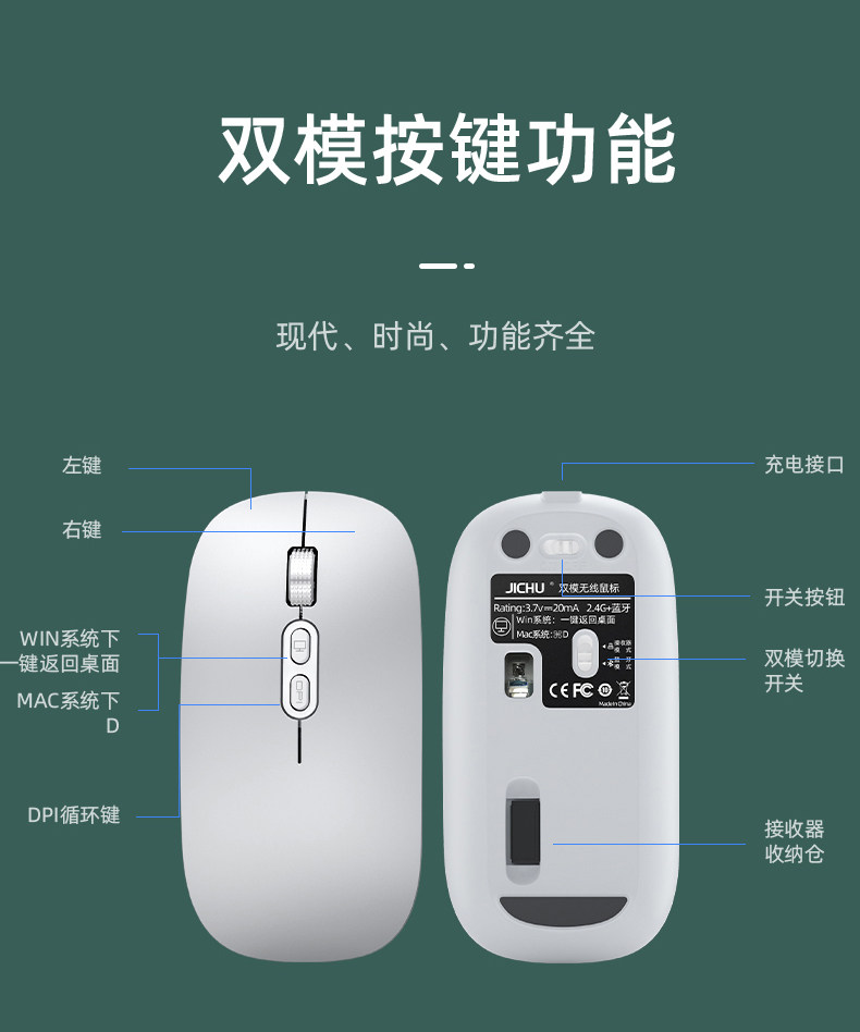 - Фарфоровая белая [двойная модель] Беспроводная 2,4G+Bluetooth Edition