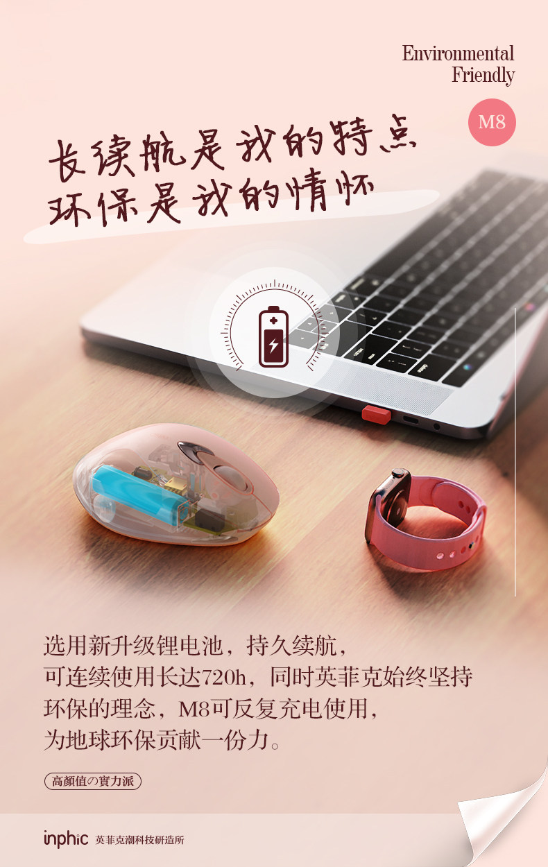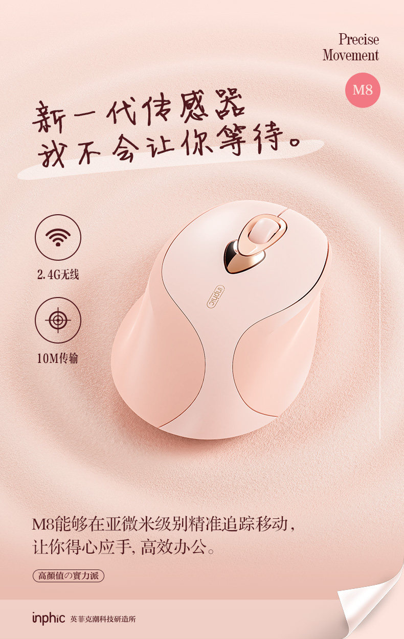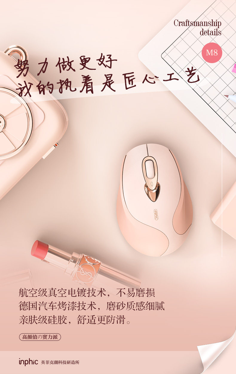 Infink M8 Girls Mouse Mouse Type-C Зарядка безмолвного офиса заканчивается богиней Беспроводной мыши Камелия