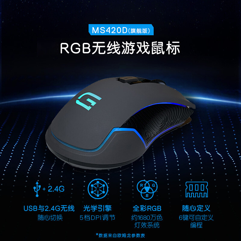 Dell продюсировал Dai Ji Yan Xuan 420DS/3323 Wireless E -Sports Gaming Mouse Dual -Mold Macro Programming RGB Light Effect