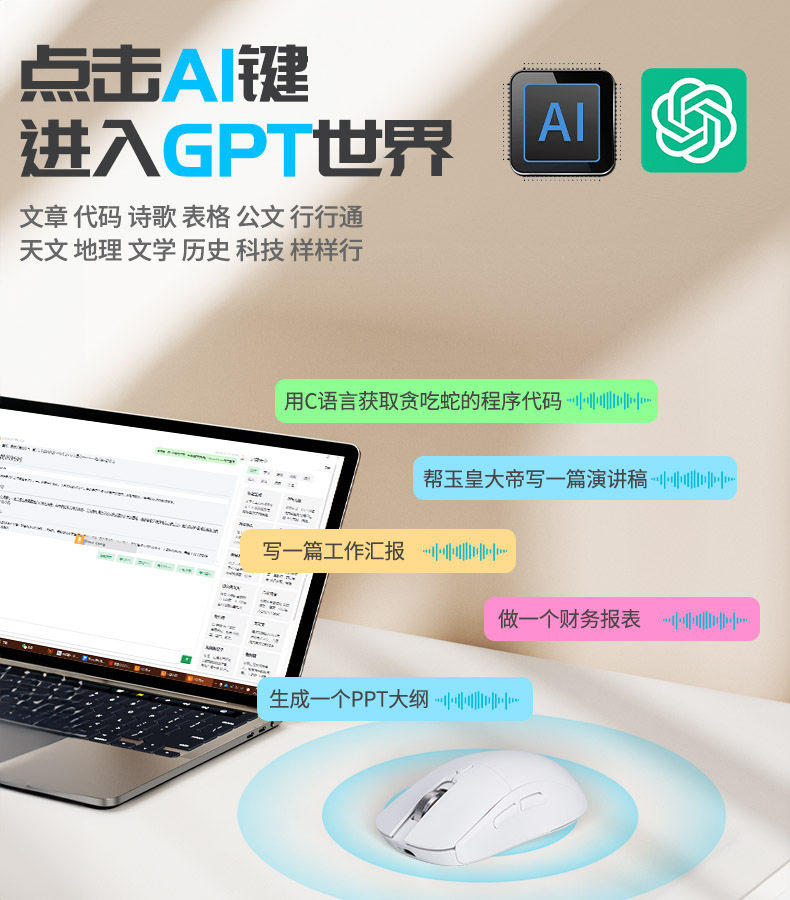AI Искусственный интеллект мыши беспроводной беспроводной голосовой контроль типинг