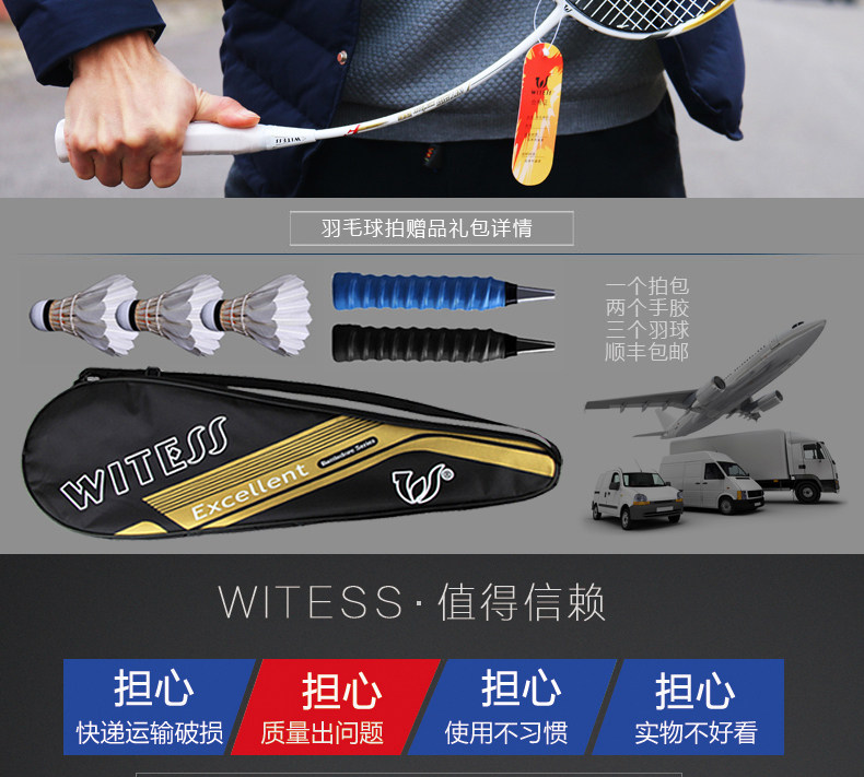 WITESS Ракетка бадминтона искренняя двойная ультраультрауглерочная наступательная одноразовая одноразовый волокно младший первое обучение YMQP Полная бесплатная доставка