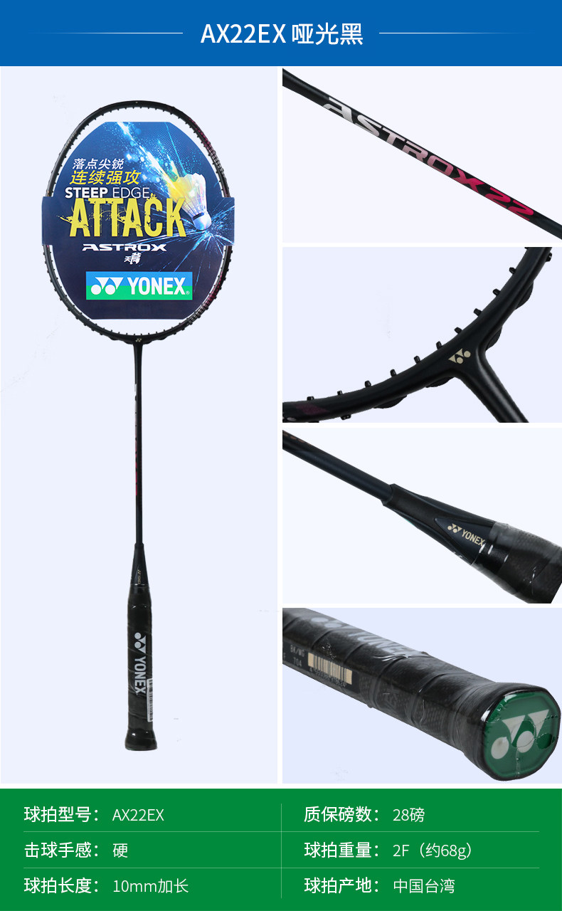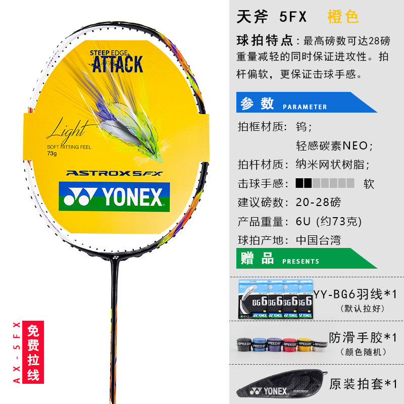 Официальный подлинный йонекс Uninx Badminton Racket Single -Shot из углеродного волокна Ultra -Light Sky Axe 10dg Наступательная стрельба