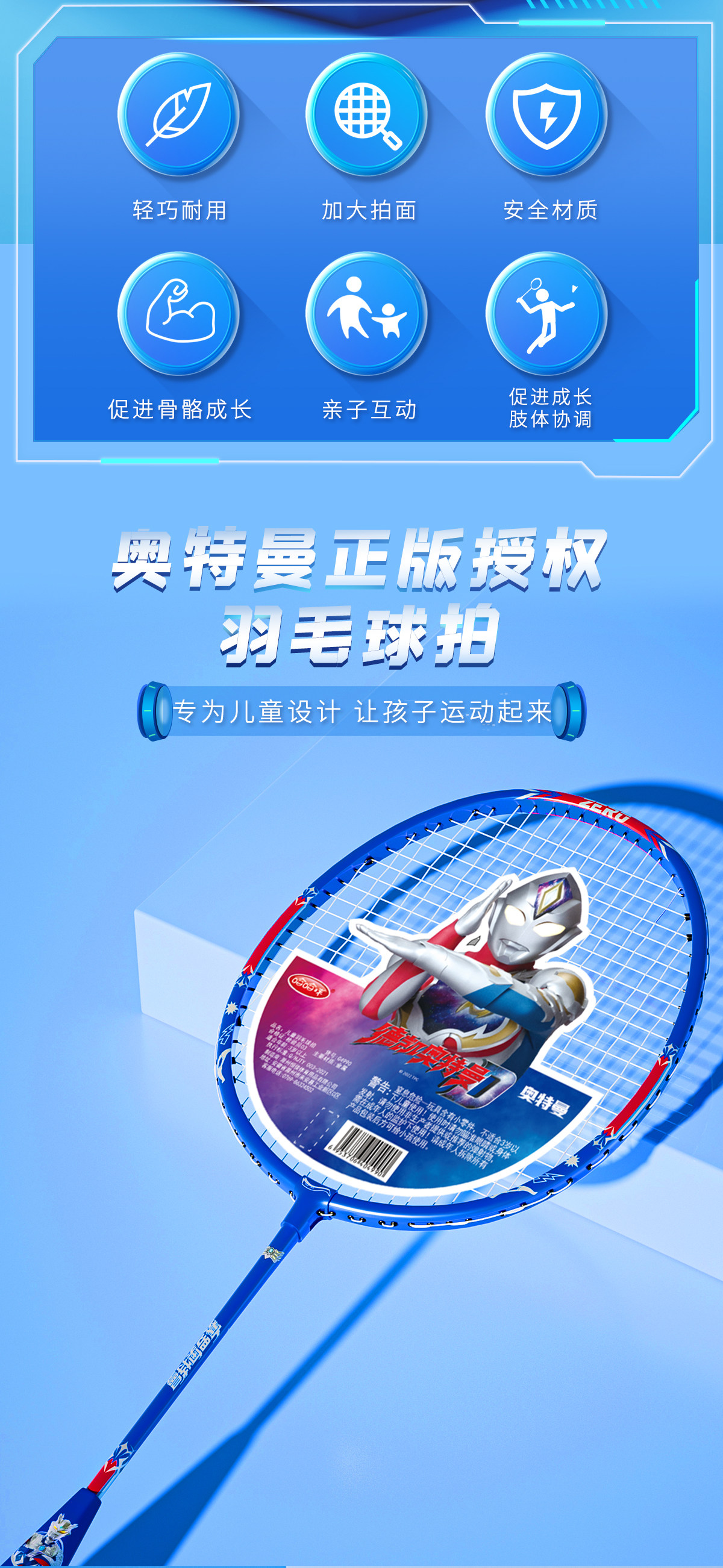 Ultra, Ультрамен Тига, детская ракетка для бадминтона для школьников, спортивный костюм для тренировок, подходит для начинающих, подходит для подростков, семейный стиль
