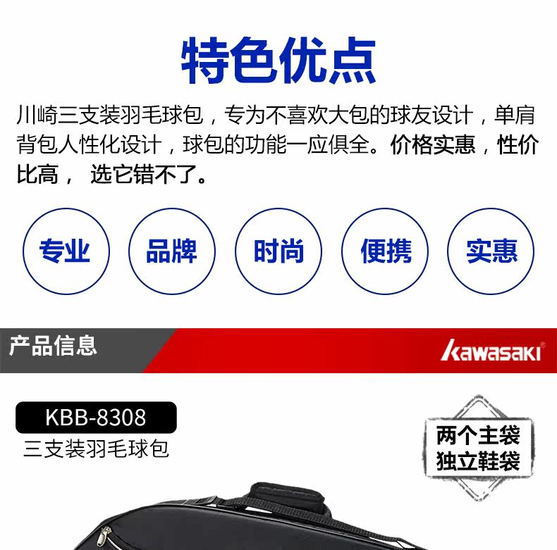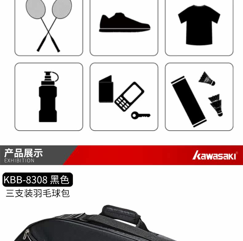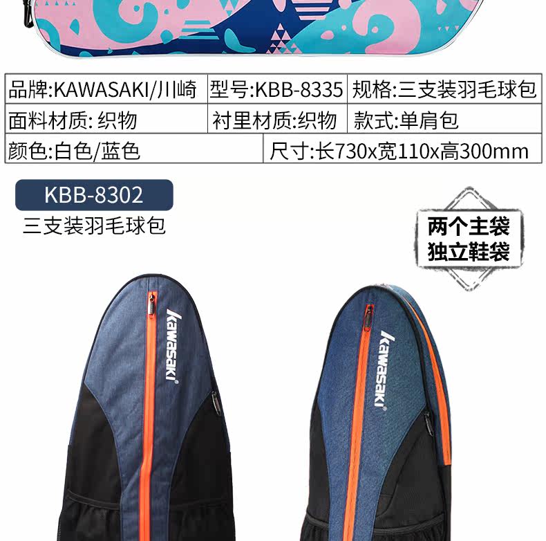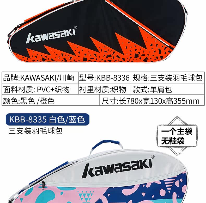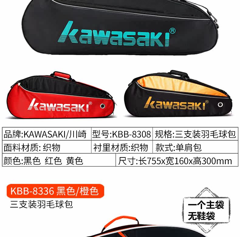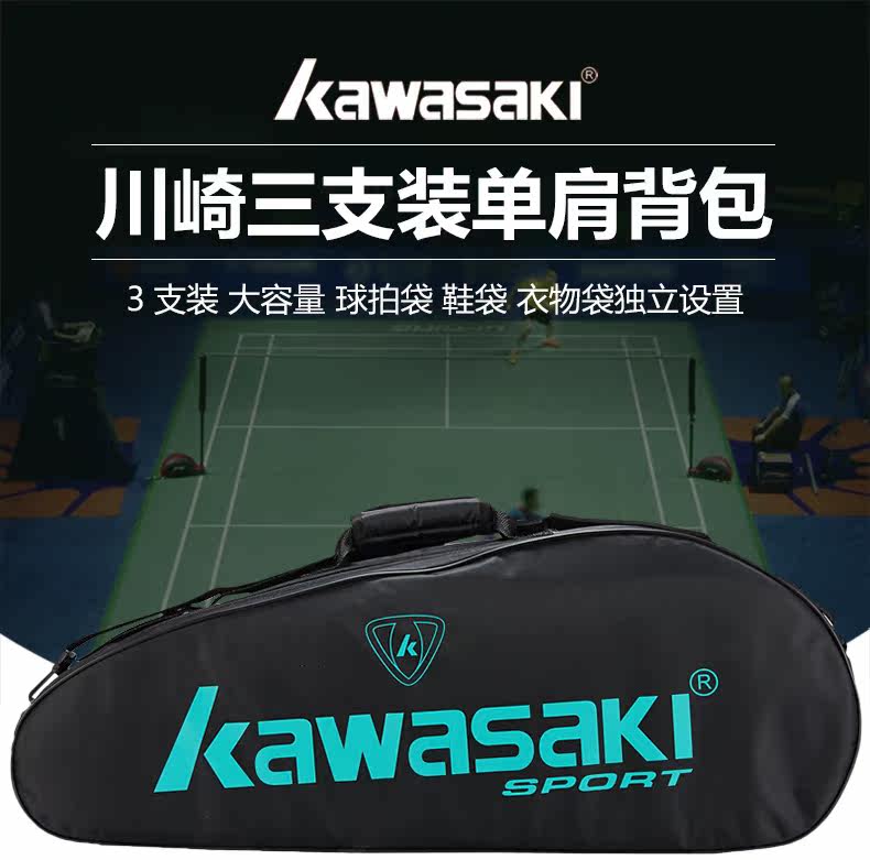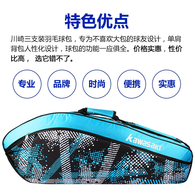 Kawasaki, ракетка для бадминтона, сумка на одно плечо, спортивный портативный рюкзак, сумка-чехол подходит для мужчин и женщин, 3 шт