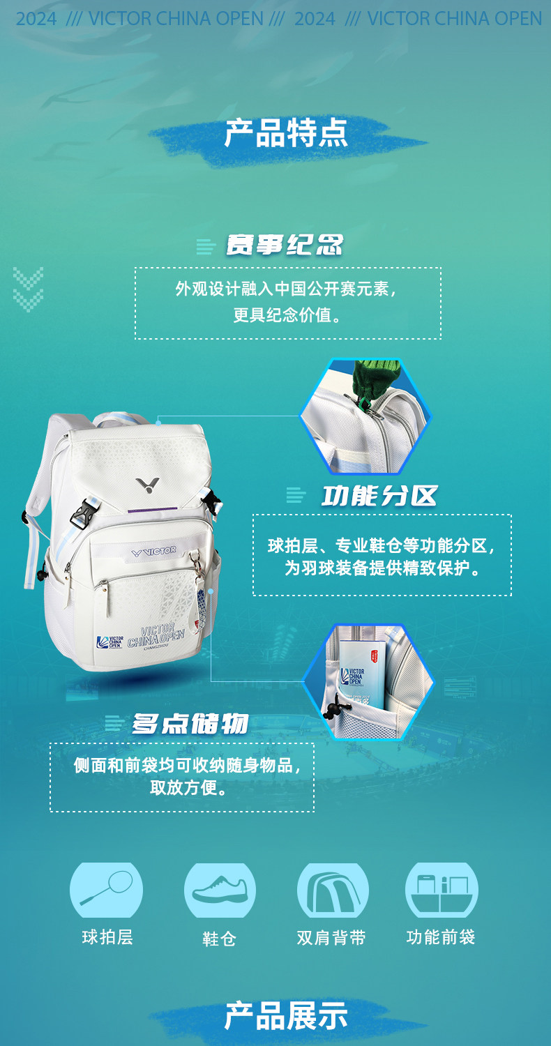 Victor, памятный универсальный вместительный и большой рюкзак для бадминтона