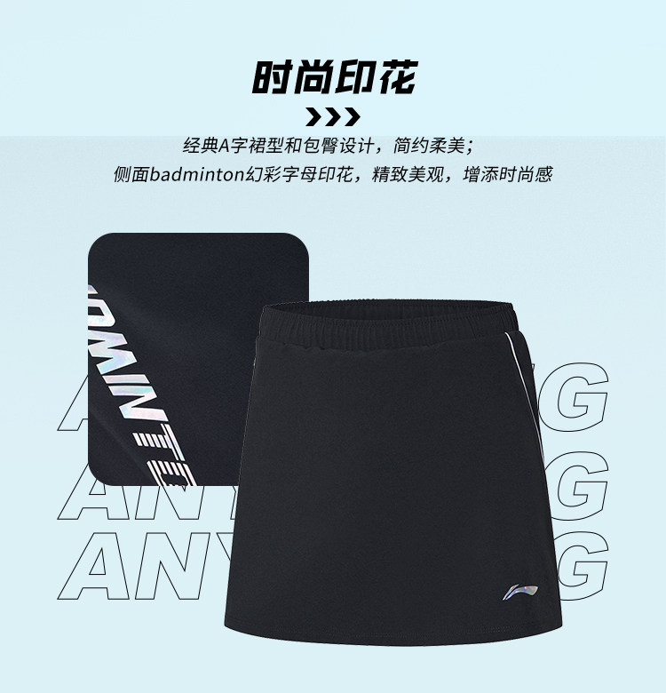 Li Ning, быстросохнущая спортивная юбка для бадминтона, коллекция 2021