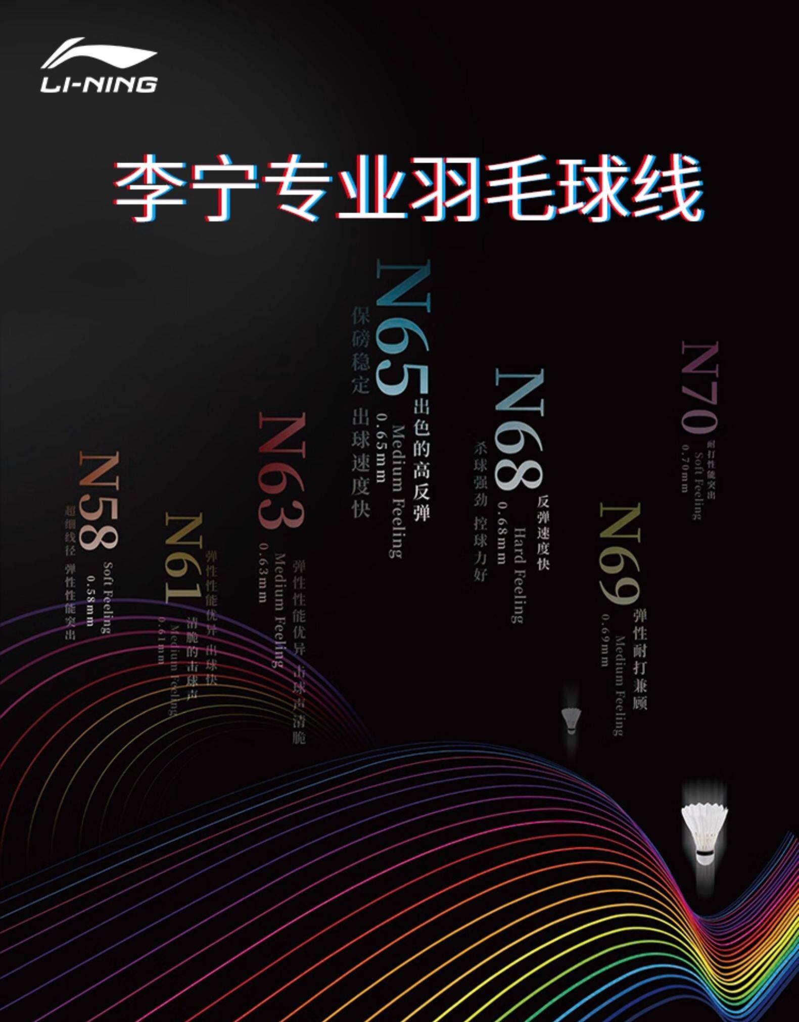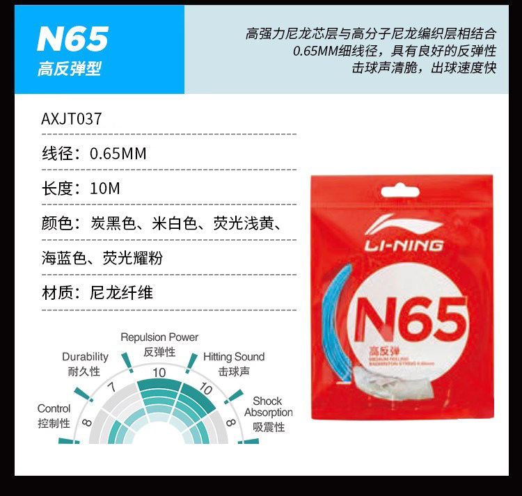 Li Ning N65 струна для бадминтона с высоким отскоком, новая серия струн для бадминтона