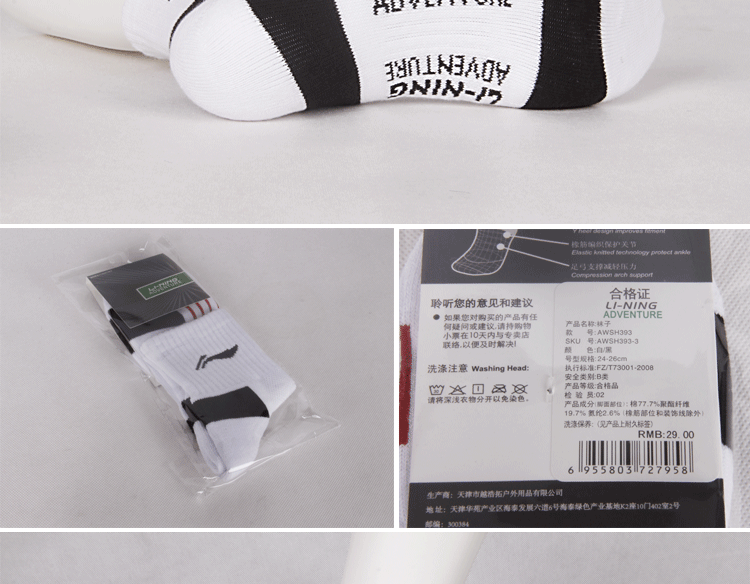 Напоминание: Спортивные носки из серии исследований, продаваемых Ли Нин, теперь не имеют анти -каунфекционных кодов.Что касается этой проблемы, вы также можете ввести Ли Нин, чтобы исследовать официальный интернет-магазин для запросов: http://www.lining-denture.com/ch.php
