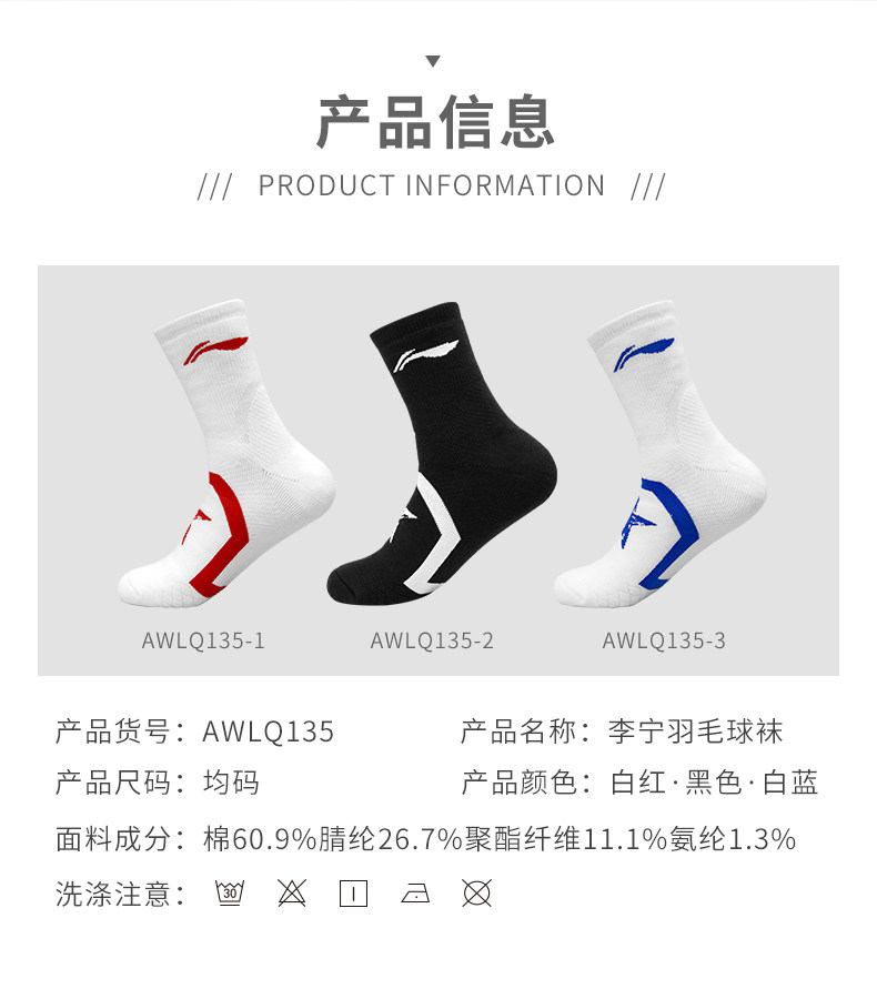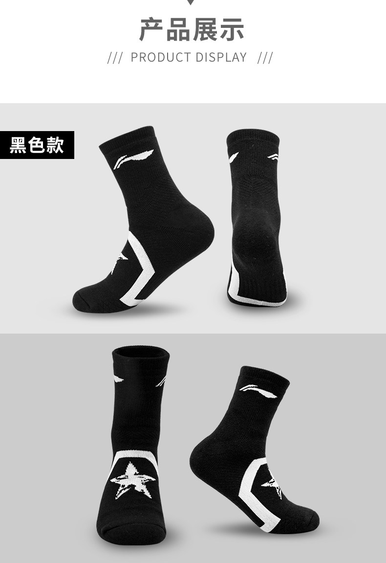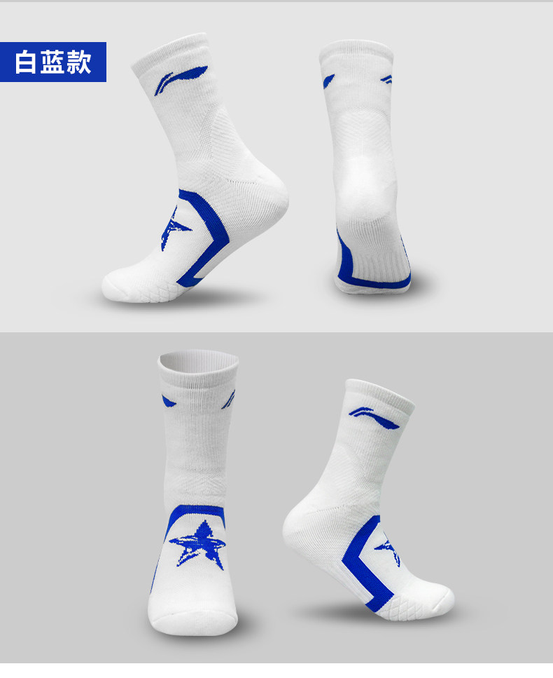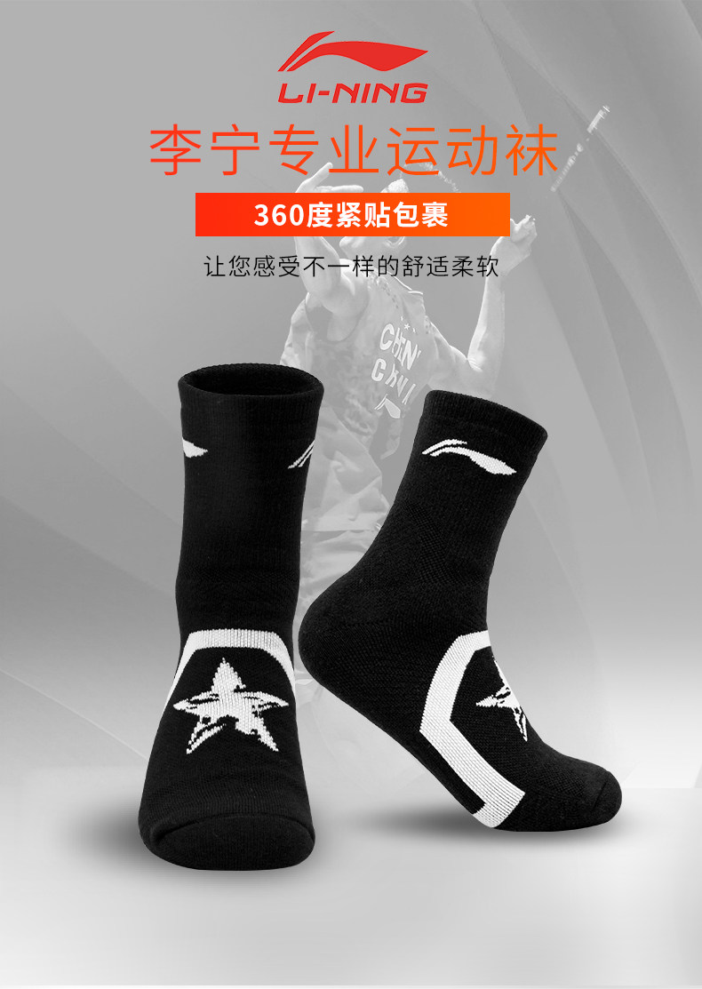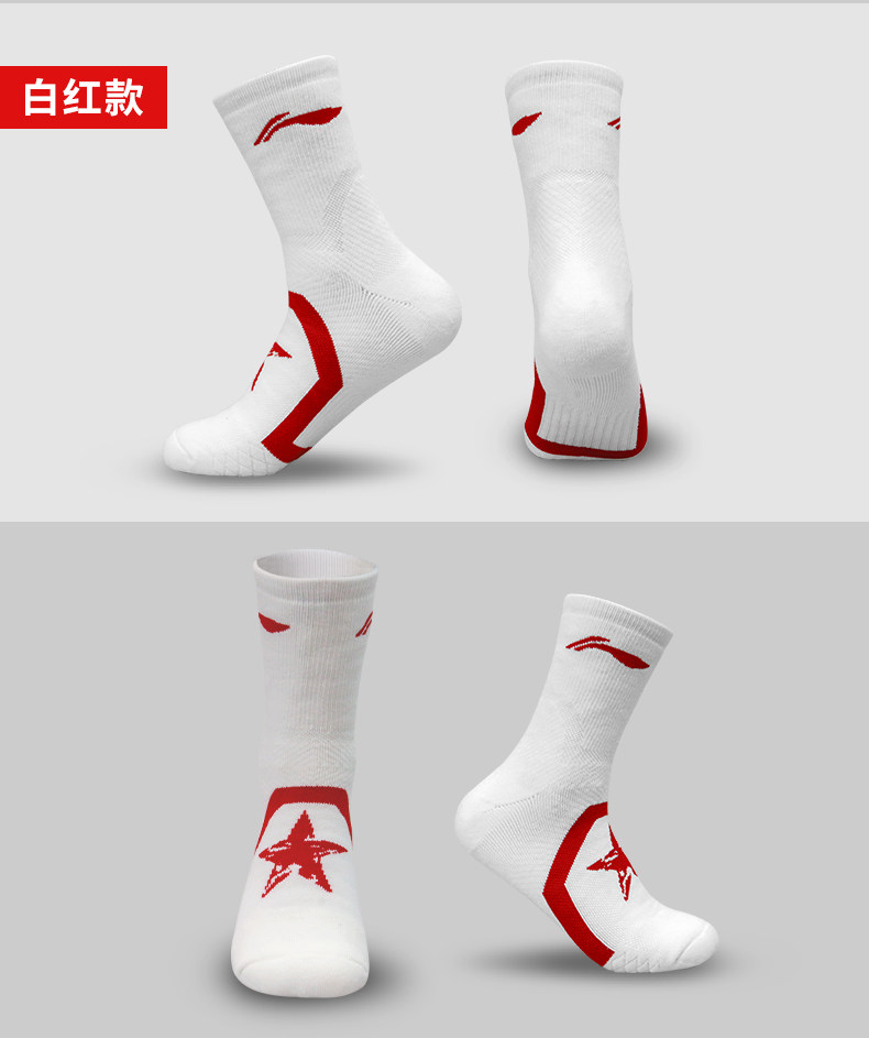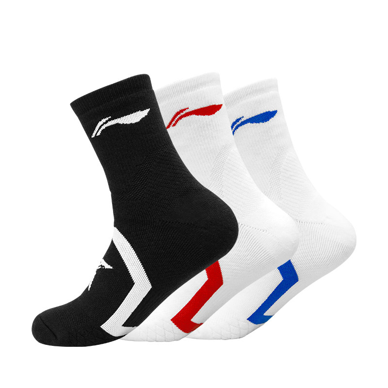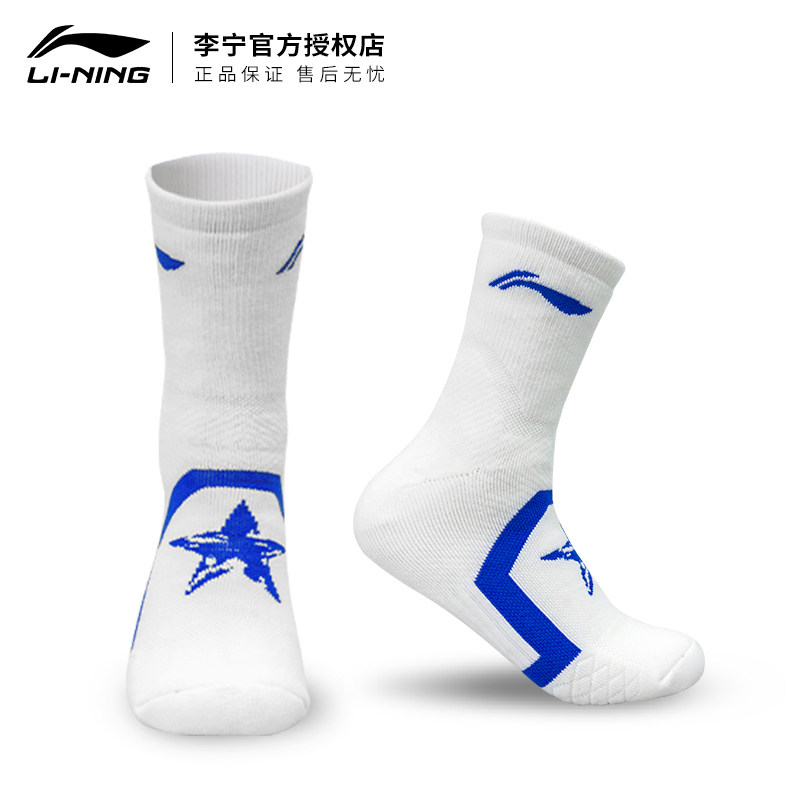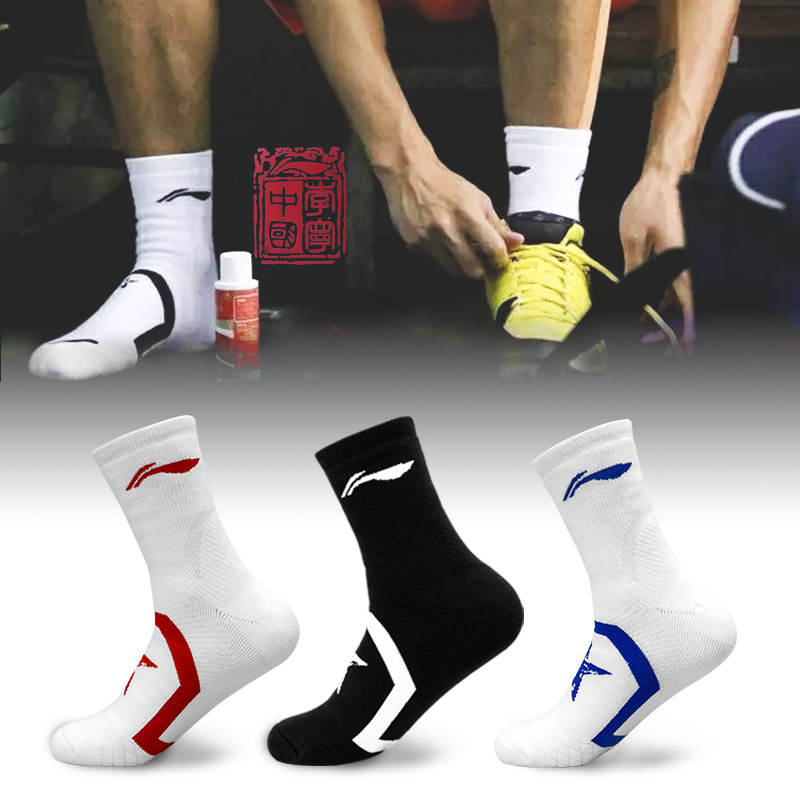 Li Ning, спортивные хлопковые нескользящие баскетбольные носки для бадминтона, длина миди, впитывают пот и запах, увеличенная толщина