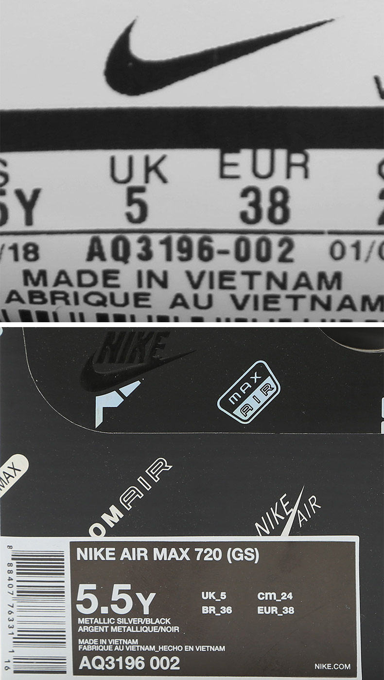 Nike/耐克 Подлинный Air Max 720 (GS) Big Tong Xinpin Новая булавка Sports Sports Running Chose AQ3196