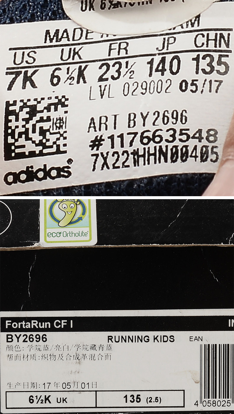 Adidas/阿迪达斯 Официальная подлинная Fortarun CF I Детская спортивная обувь на липучке 2696