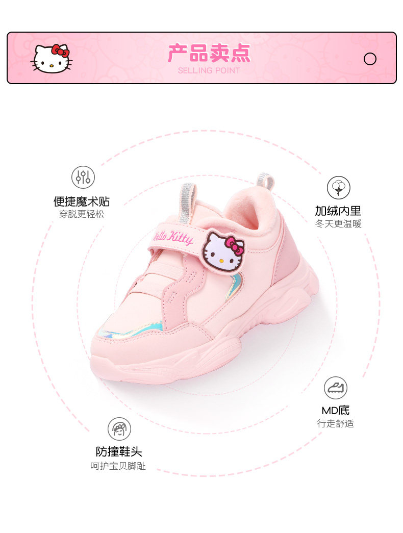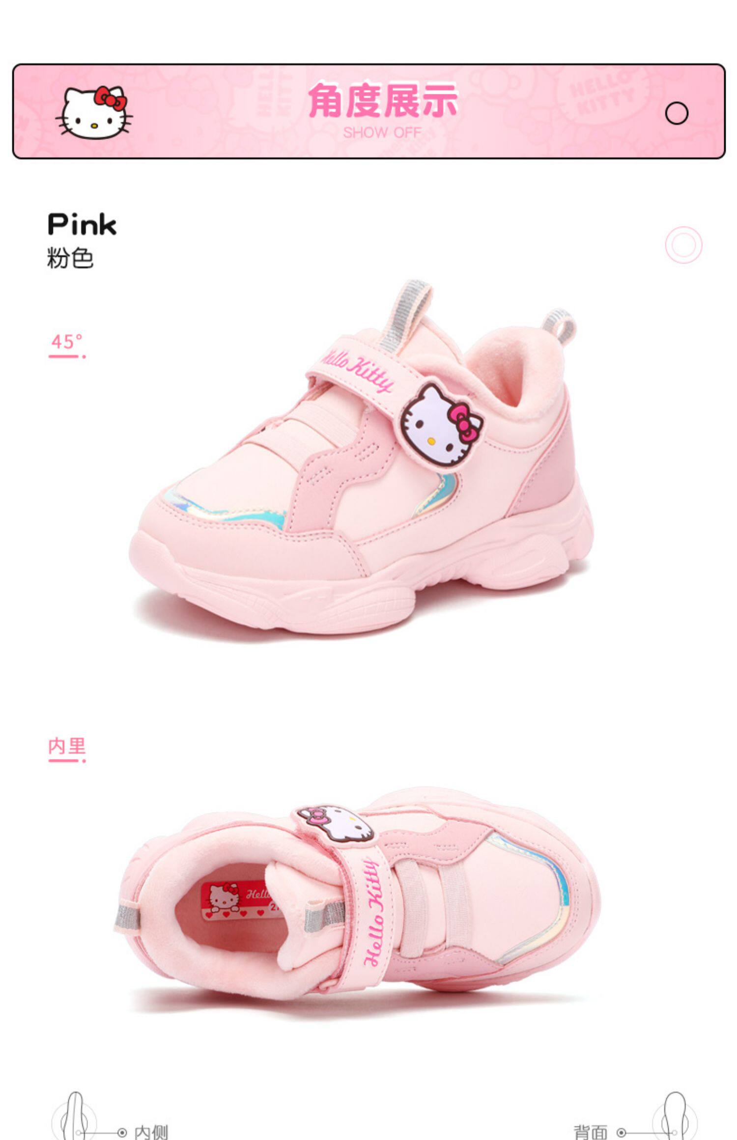 Hellokitty детская обувь девочка спортивная обувь зимние новые девушки с бархатными теплыми туфлями две хлопковые туфли водонепроницаемые