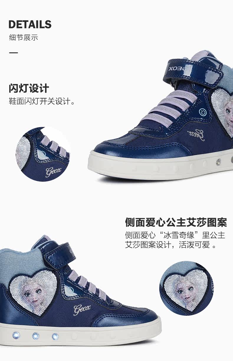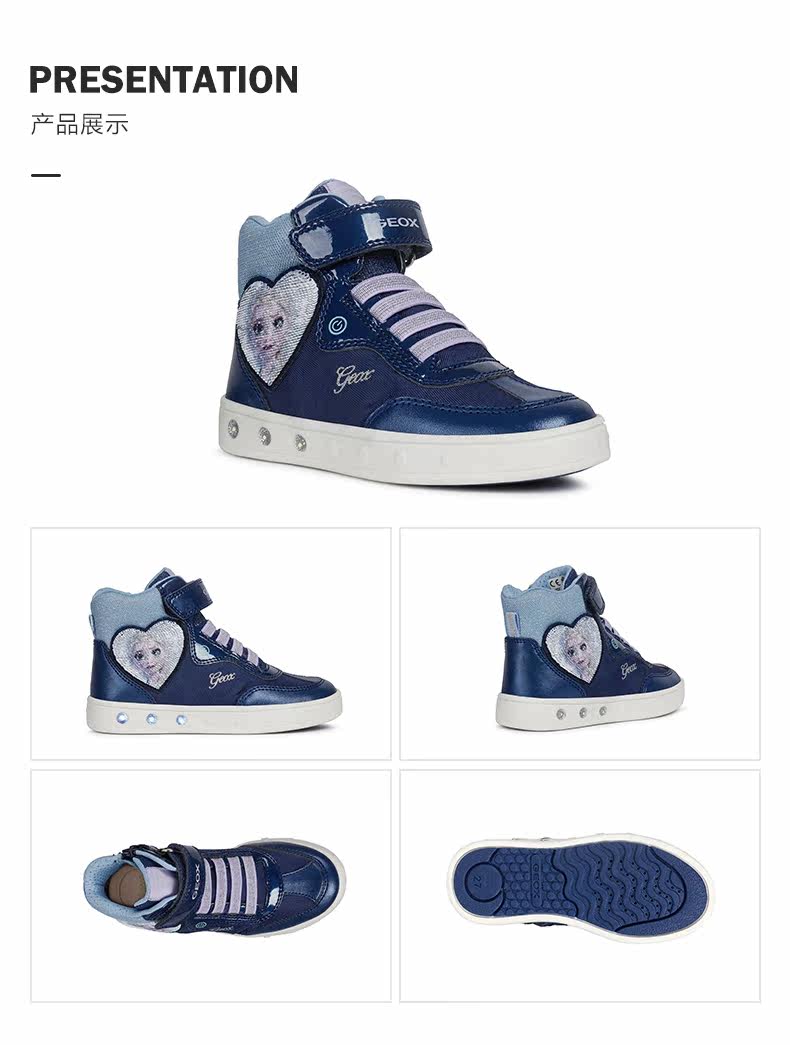 GEOX/健乐士 Детская высокая модная повседневная обувь, «Холодное сердце»