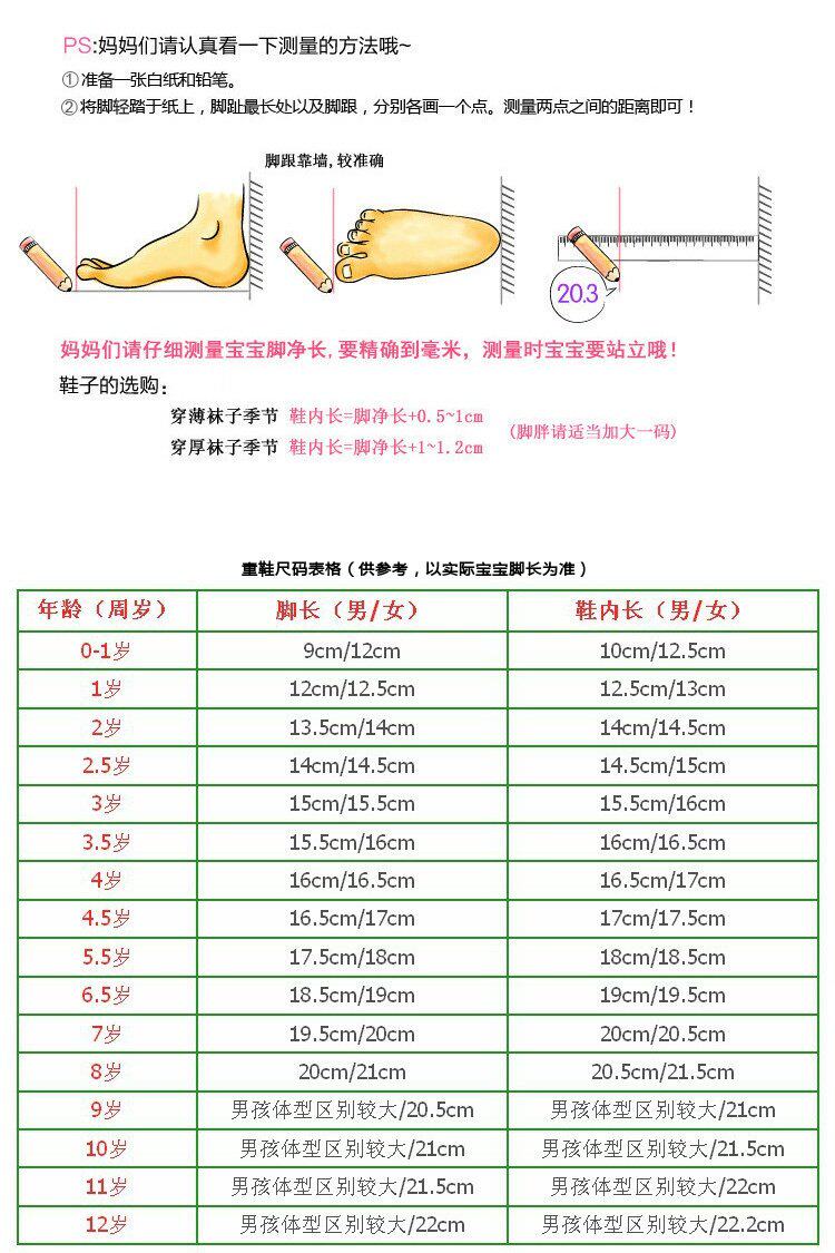 | Размер обуви: | 13.5см, 22 ярда/внутренняя длина 14 см., 14.5см, 24 ярда/15 см в длину, 15.5см, 26 ярдов/внутренний 16см, 16.5см, 17.2см, 17.9см, 18.5см, Рекомендуется выбрать внутреннюю длину ног длиной+1 см |